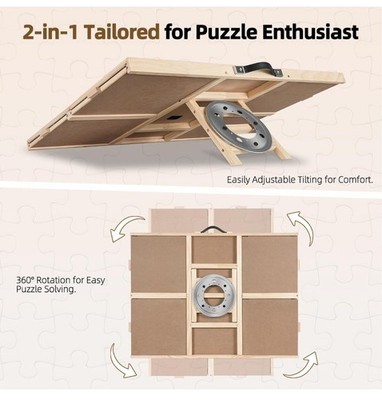 2-in-1 Spinning and Tilting :ALL4JIG proudly presents a pioneering puzzle table with that can tilt and spin which offers a cost-effective solution for puzzlers desiring the best of both features in one table. Tilting feature helps to find your perfect angle,allowing you to puzzle for hours without straining back or neck. Rotating and spinning allows you to enhance visibility and access to all areas without moving around with the stainless steel lazy Susan with a non-slip base to ensure stability