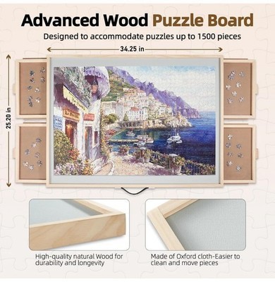 Natural Wood High-Capacity Design: Elevate your puzzling with a puzzle table for adults made of premium natural wood. Not only is it sturdy and long-lasting, but it's also environmentally friendly. Whether you're working on a 1000-piece masterpiece or pushing the boundaries with 1500 pieces, our table is the haven you've been seeking. Also, puzzle table is designed to be portable with a handle and you could place it under the sofa or bed to save more space.