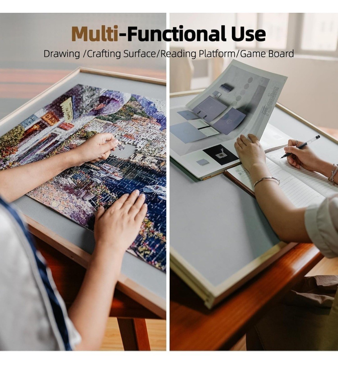 Easy-Clean Non-Slip Work Surface: Enjoy a fuss-free puzzling experience on our Oxford cloth tabletop crafted with anti-tear composition. Engineered for easy cleaning, the surface of jigsaw puzzle table ensures your puzzle pieces glide smoothly and won't warp or bend when you are assembling, and even when tilted, the non-slip nature guarantees they stay right where you want them. Dive into an uninterrupted and secure puzzle session every time