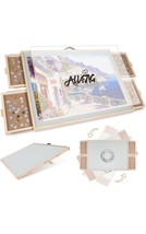 The ALL4JIG 1500 Piece Rotating Puzzle Board with Drawers and Cover is a high-quality wooden puzzle board featuring a medium size of 25"X34". With 1500 pieces, this puzzle is recommended for ages 12 months and up, making it suitable for both children and adults. The natural wood color and art theme add a touch of elegance to this contemporary puzzle, perfect for relaxation and mental stimulation. The innovative design of the puzzle board with drawers makes it easy to store and transport, making it a great addition to any puzzle enthusiast's collection.