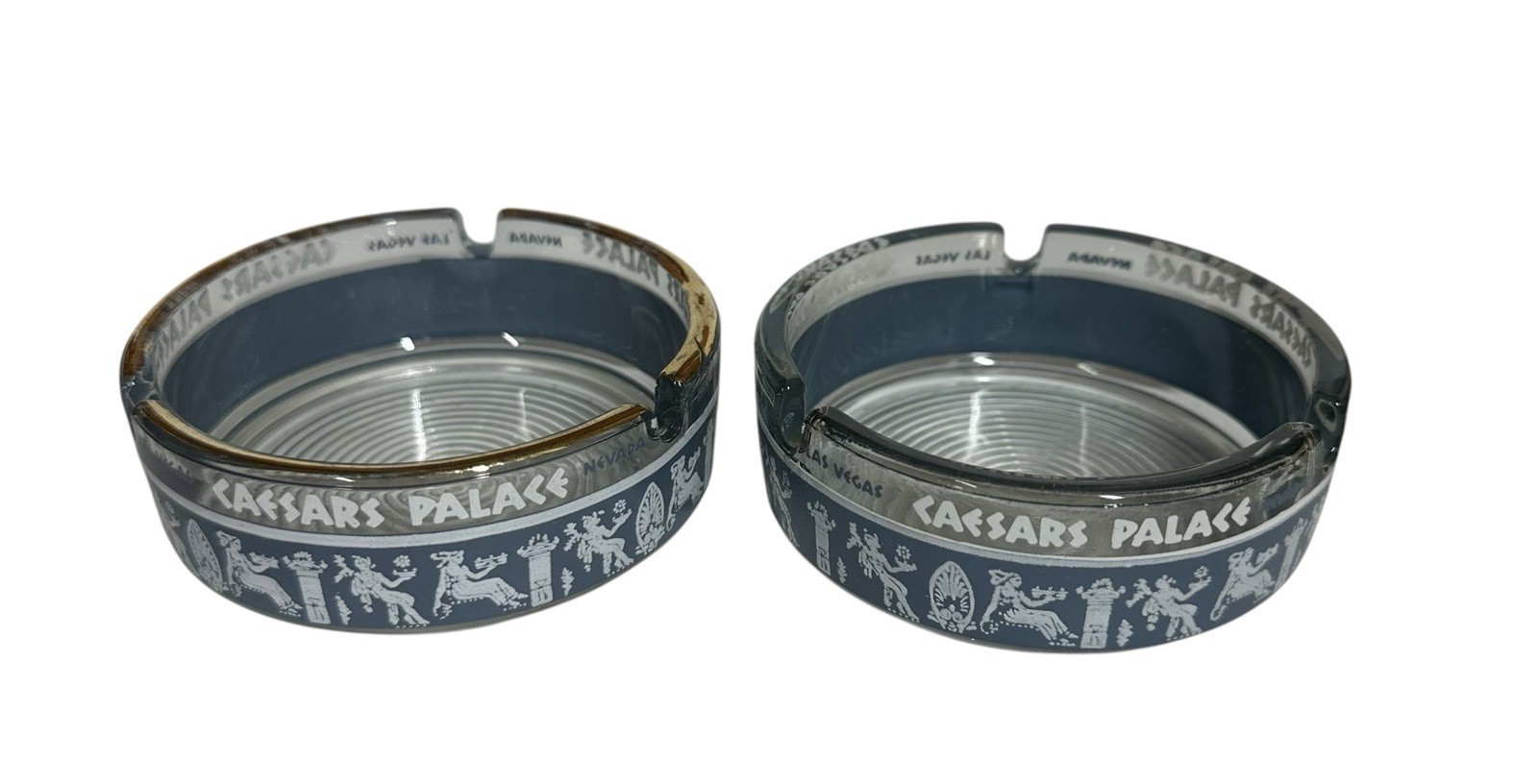 Caesars Palace Las Vegas Hotel & Casino Ashtrays Set Of 2 Blue White Clear Vtg