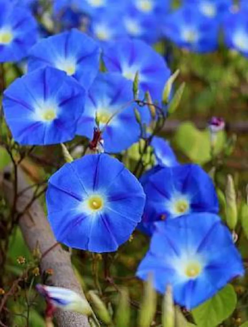 A popular free-flowering annual with funnel-shaped blue flowers .About 3 to 6 meters (10 to 20 feet) high, used as climbing or hanging vine. After all danger of frost is past, soak seeds overnight and plant them directly in the garden about 3/4 cm (1/24 inch) below the surface. Water well. Seed may be started indoors for earlier bloom. Later thin or transplant to about 15 cm( 6 inches apart)