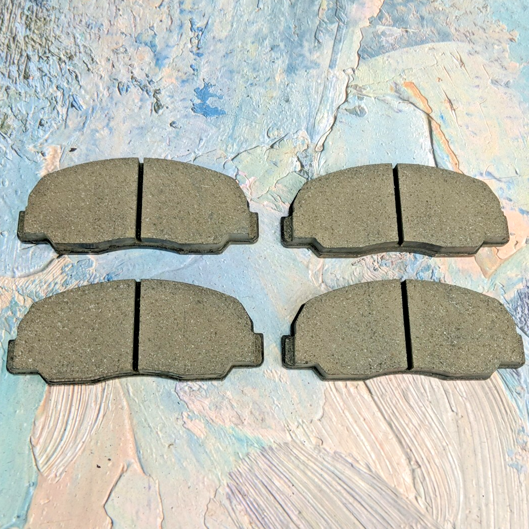 Exact item set is shown. New old stock organic brake pads with original packaging. Set weight 2.5 lbs. Made in Canada. No returns if installed. Please review our business policies in our store for information regarding returns, shipping and warranties. Please review our business policies in our store for information regarding returns, shipping and warranties.