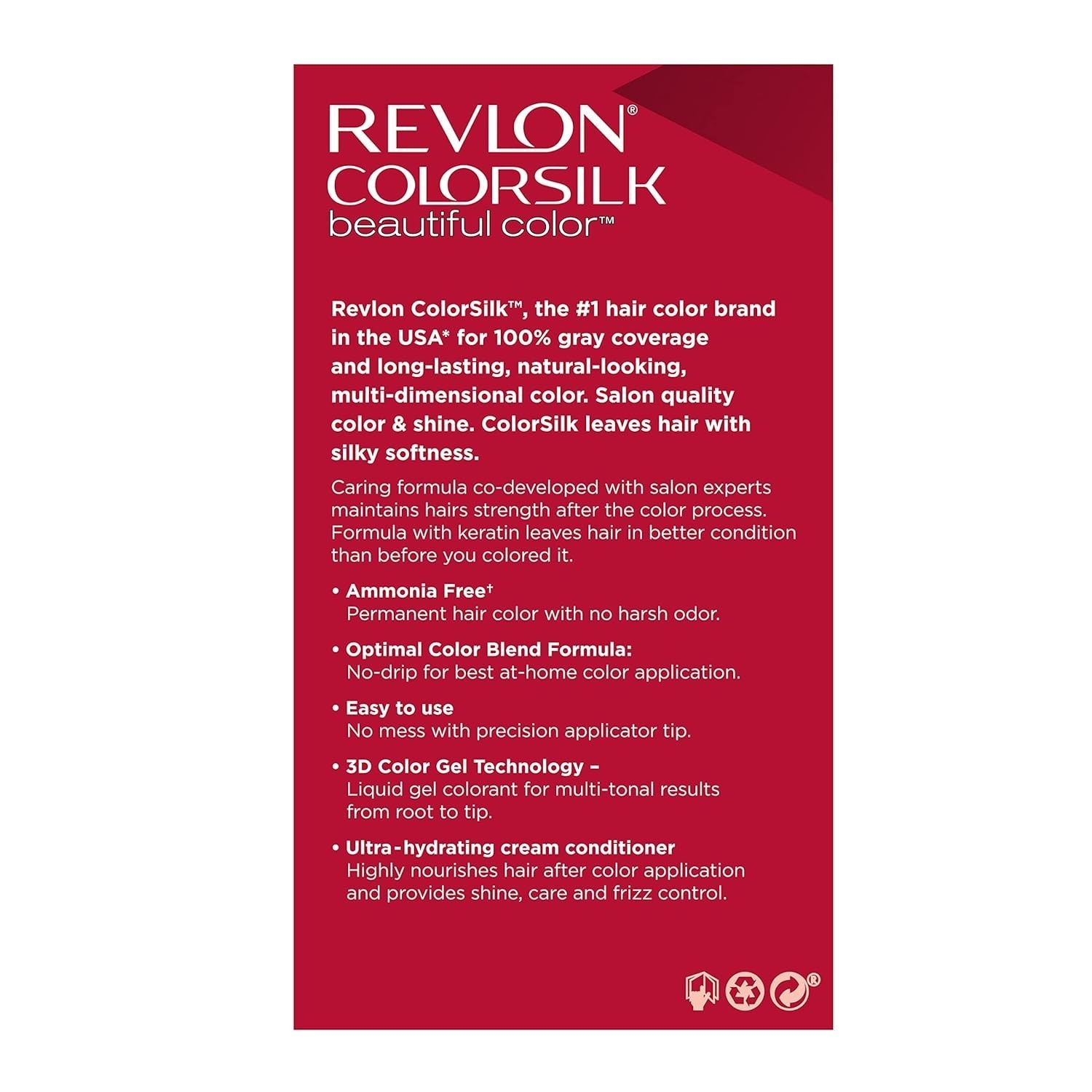 KERATIN ENRICHED HAIR COLOR: Nourishing, ammonia-free hair color formula is infused with Keratin and Silk Amino Acid to leave hair in better condition than before you colored it