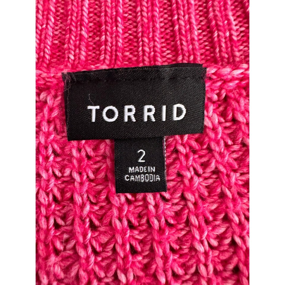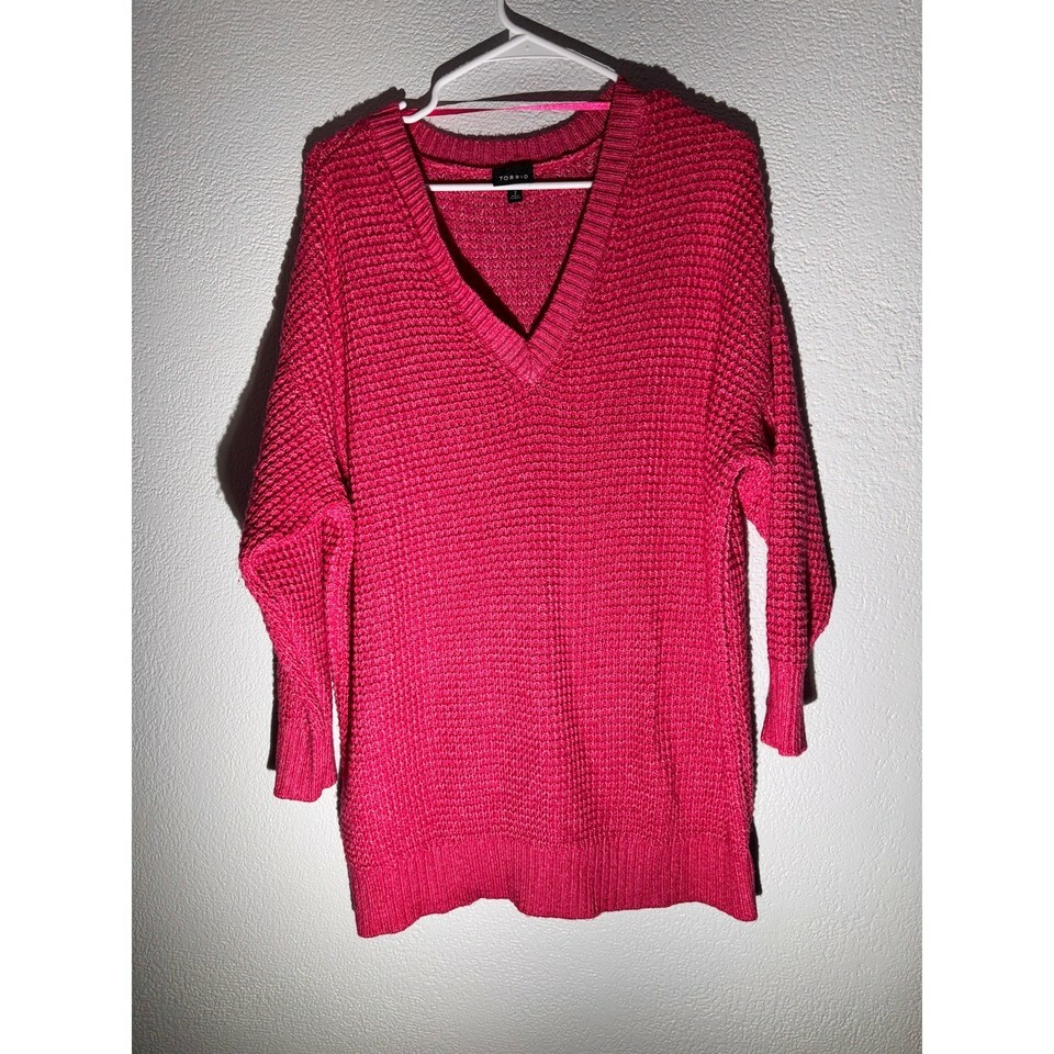 Brighten your wardrobe with this bold hot pink chunky knit sweater from Torrid, size 2 (equivalent to 2X). Features a cozy waffle texture, deep V-neckline, and ribbed hem and cuffs. The pullover design provides a relaxed fit perfect for layering or wearing solo.