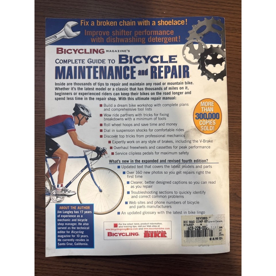Bicycling Magazine?s Complete Guide to Bicycle Maintenance and Repair (4th Edition) by Todd Downs (ISBN 9781594860737). A comprehensive manual covering everything from simple tune-ups to advanced overhauls, with clear step-by-step instructions and photos. Perfect for cyclists who want to maintain or repair road, mountain, and hybrid bikes.