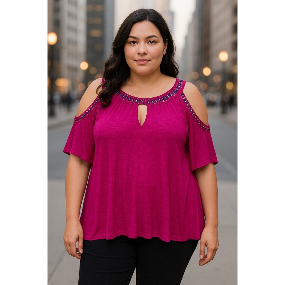 Eyeshadow Magenta Cold Shoulder Top – Size 2X and 50 similar items