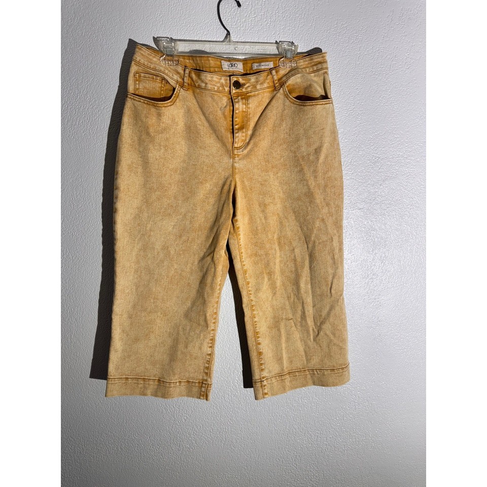 LOGO Lori Goldstein Yellow Cropped Boyfriend Jeans Size 14