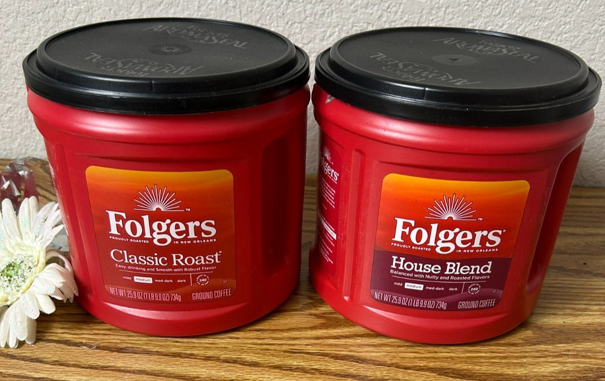 Lot of 2 Empty Folgers Coffee Cans ? Each holds 25.9 oz