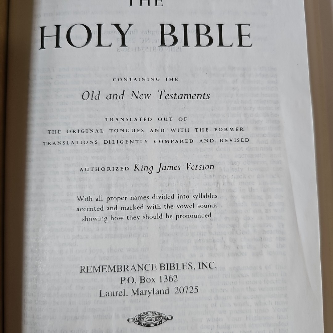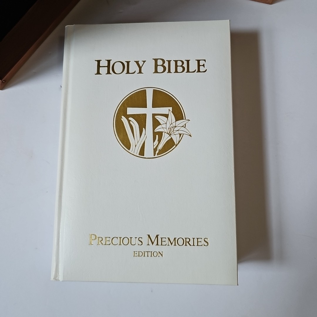 The Precious Memories Holy Bible King James Version is a special edition Bible published in 1991 by Remembrance Bibles. This Bible comes in a wooden box case, making it a perfect gift for loved ones or a special keepsake for personal use. The Bible is in English, featuring the King James Version translation, and includes the complete text of The Bible. With its unique packaging and publication year, this Bible is a timeless and precious gift for anyone looking to cherish the words of the Holy Scriptures.