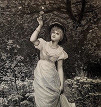 1889 Butterflies In The Garden Steel Engraving Victorian Beautiful Woman DWNN1