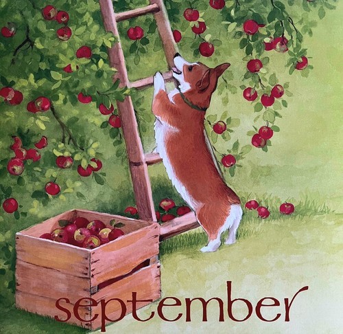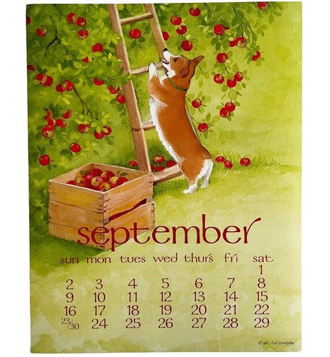 Corgi Apple Tree September Dog Days Poster Calendar 14 x 11" Art Leigh DWDDCal