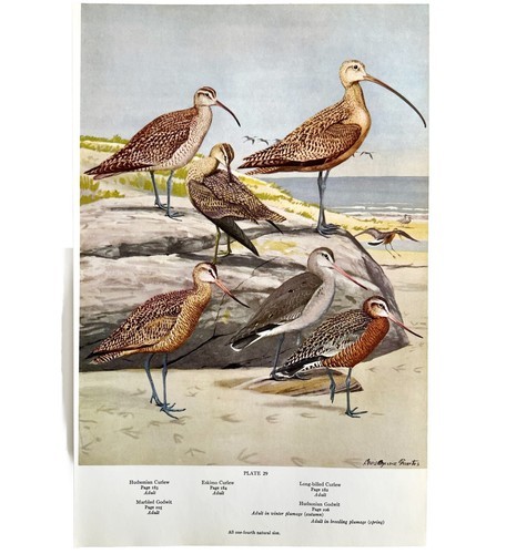 Curlews And Godwit Types 1955 Plate Print Birds Of America Nature Art DWEE33