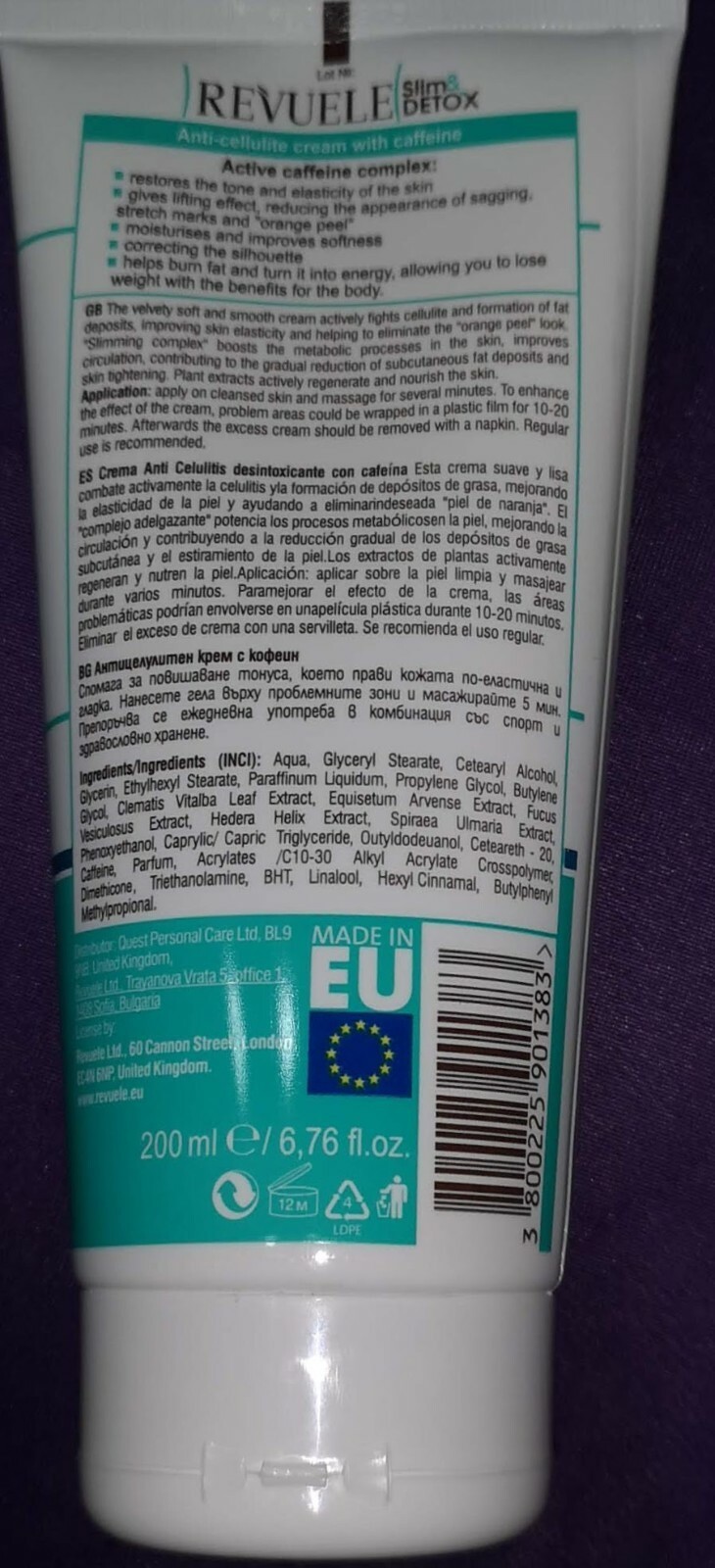 REVUELE SLIM & DETOX WITH CAFFEINE 24h ACTION ANTI–CELLULITE CREAM 200ml