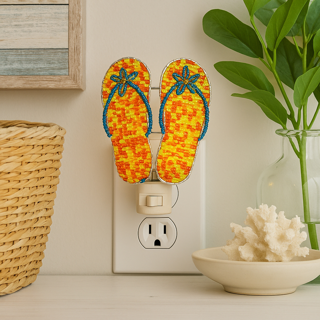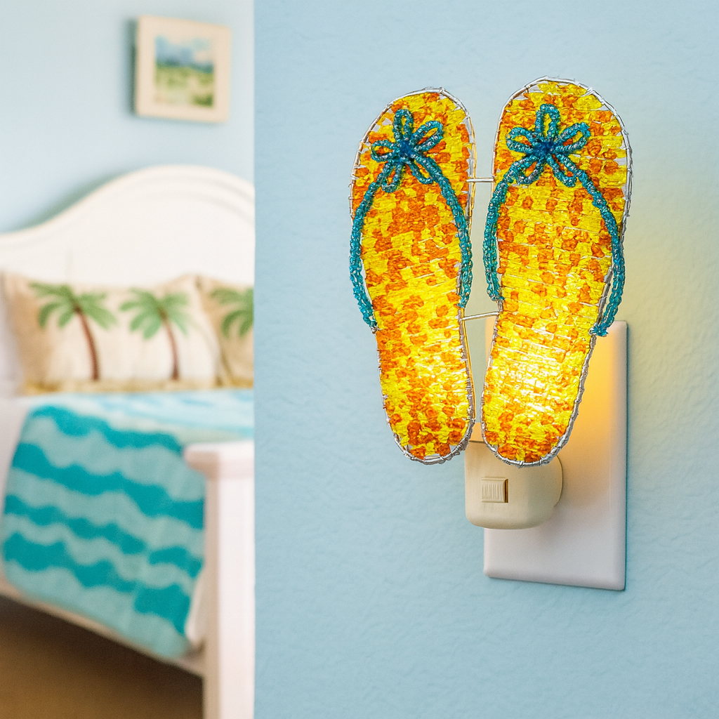 Handmade Flip Flop Night Light – Haitian Artisan Coastal Décor.