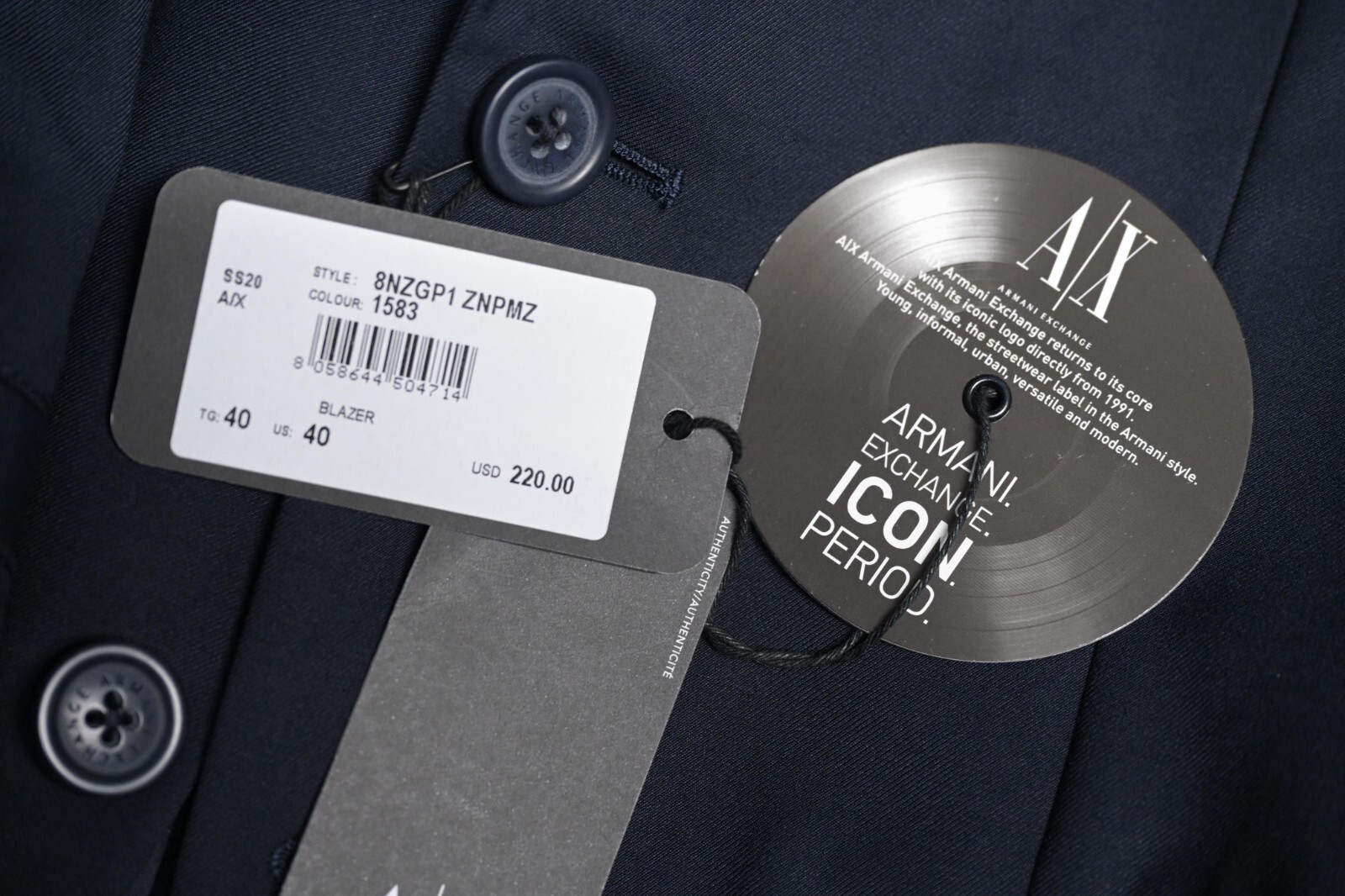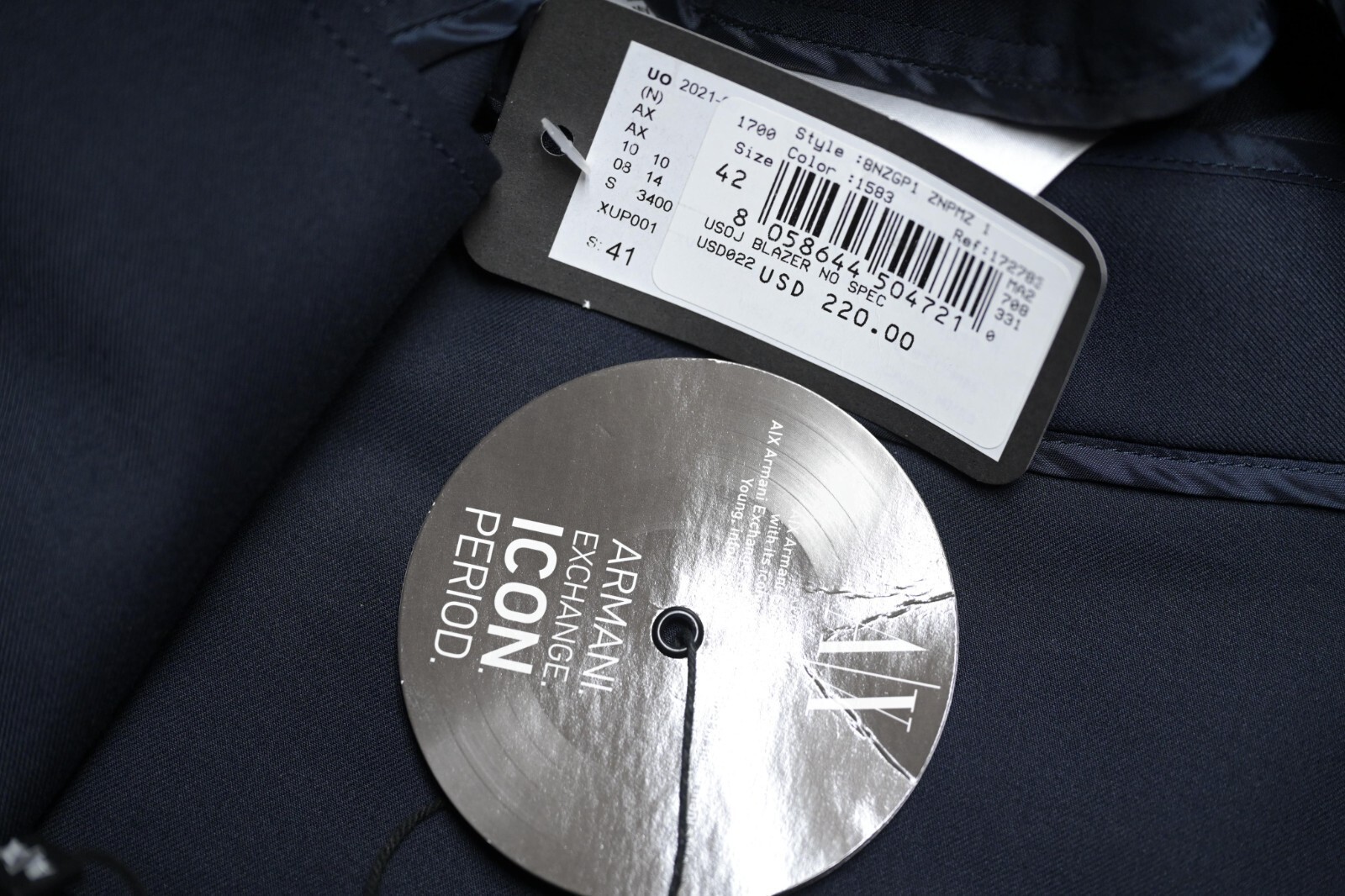 Armani Exchange A|X Icon Period $220 Men's Navy Blue Stretch Fabric Sport Coat Blazer