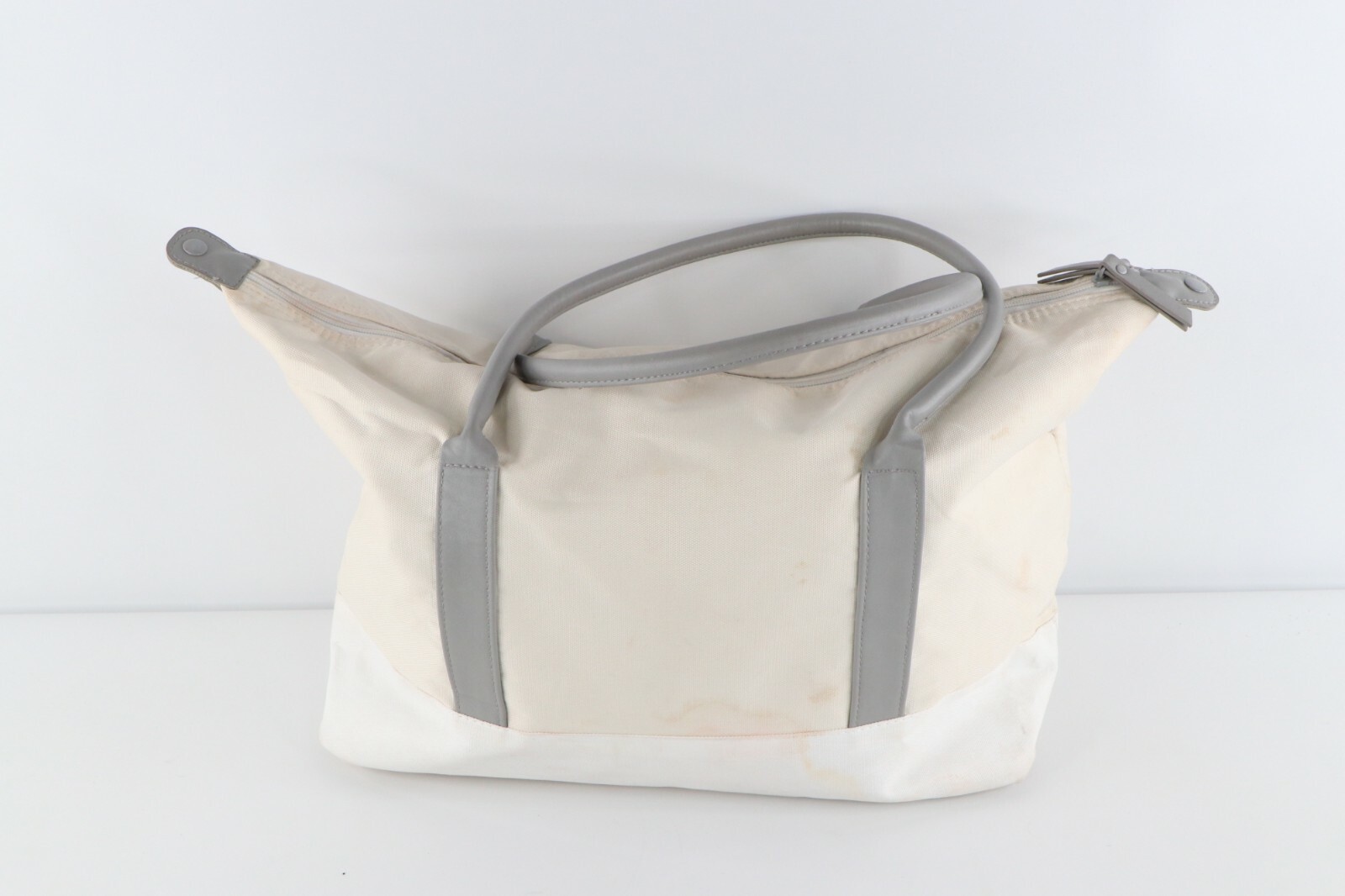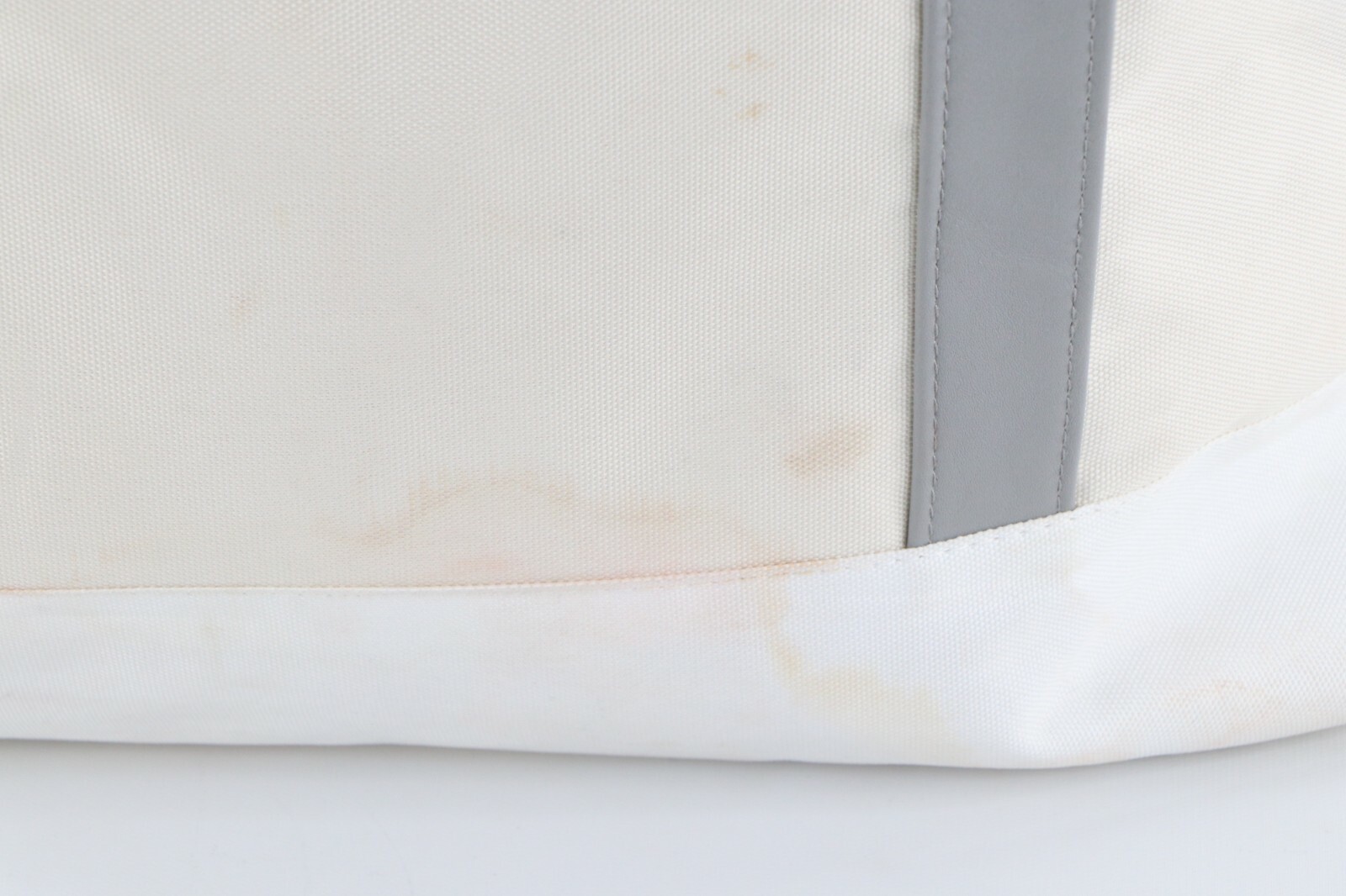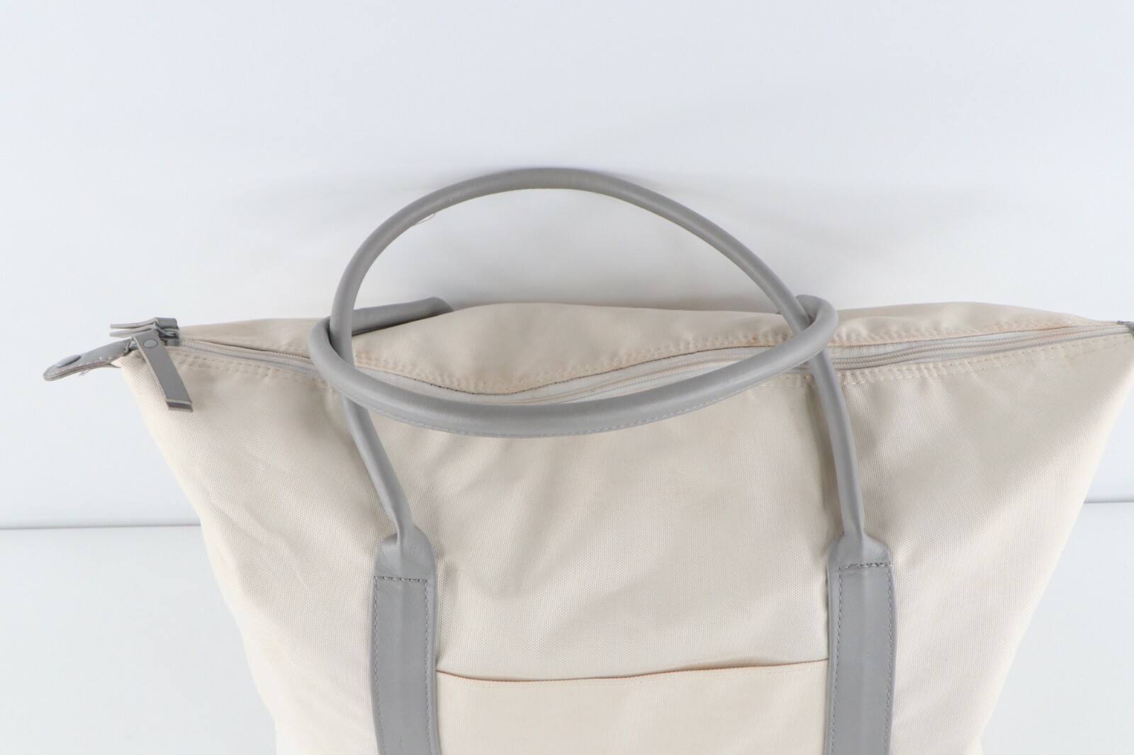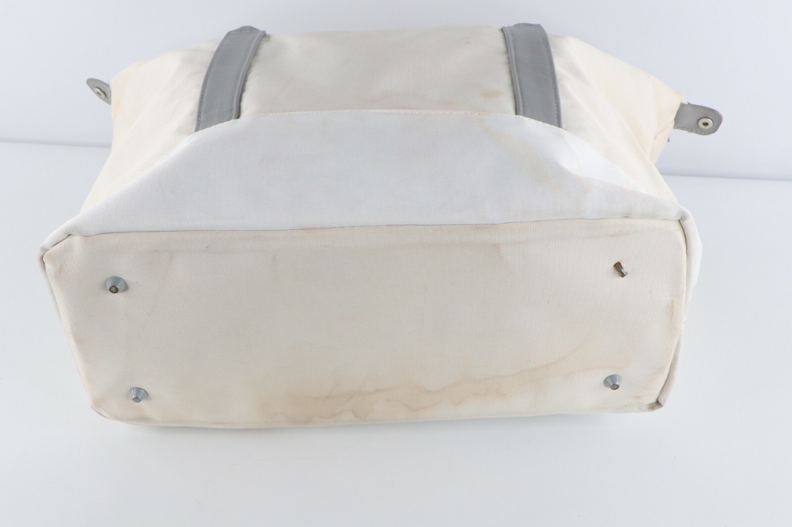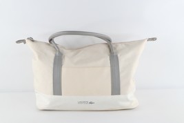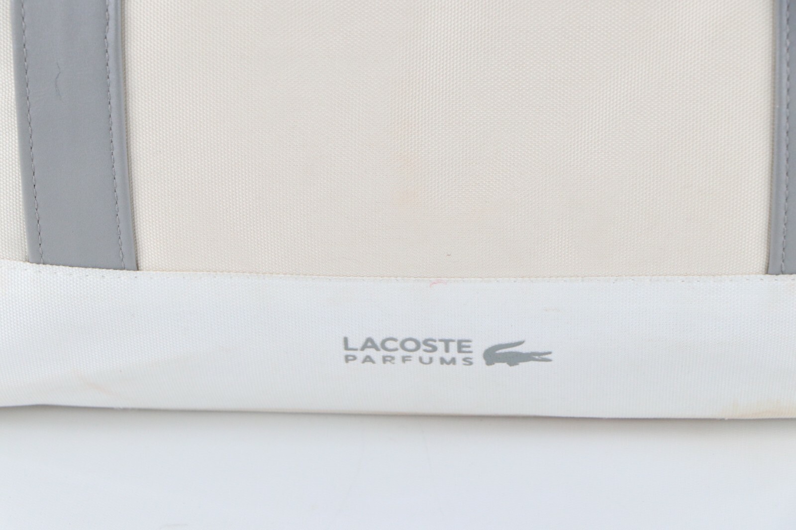 Lacoste Parfums Spell Out Crocodile Logo Leather Handled Tote Bag Nylon White