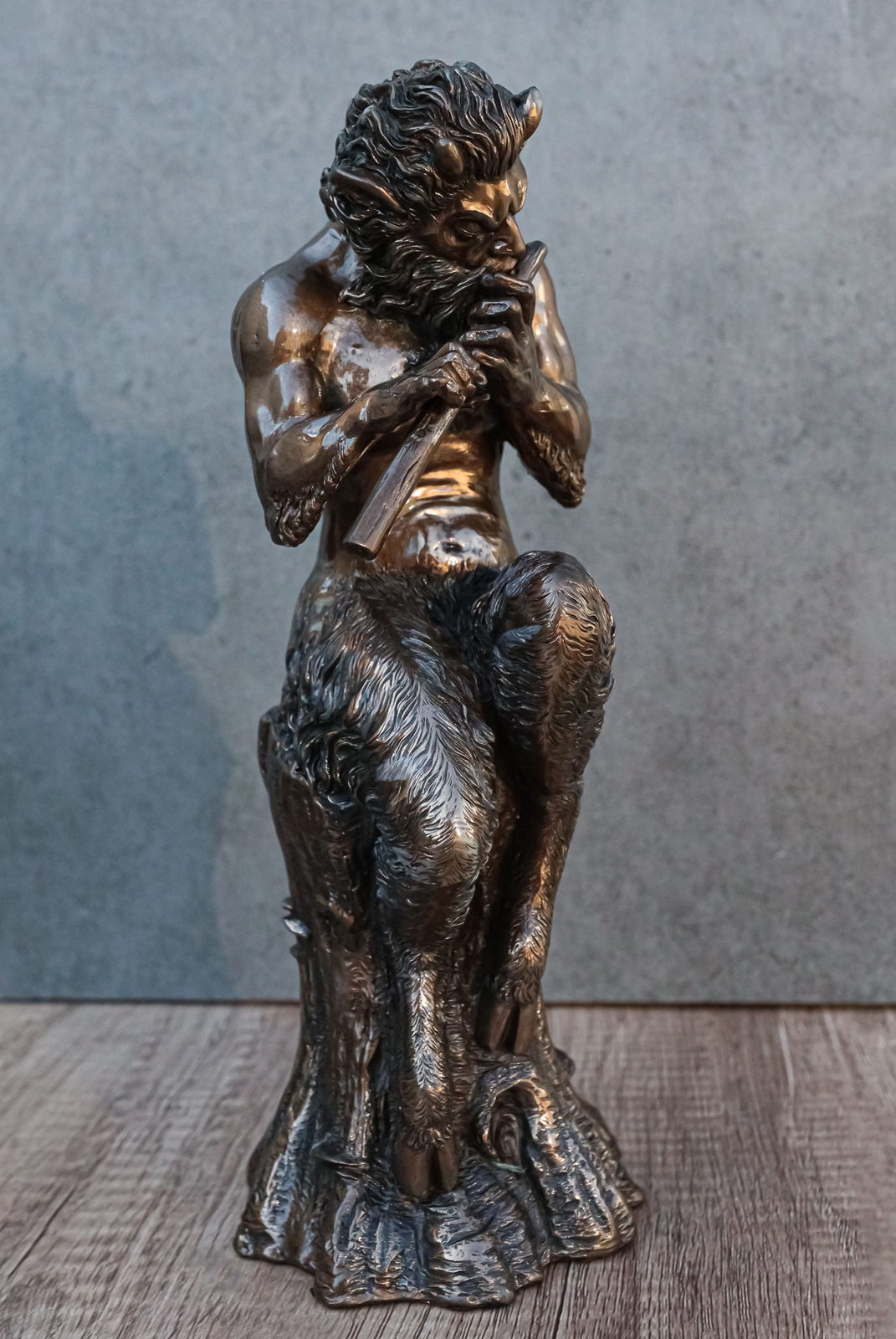? This Awesome Satyr Playing The Flute sculpture is made of designer composite resin, hand painted and polished