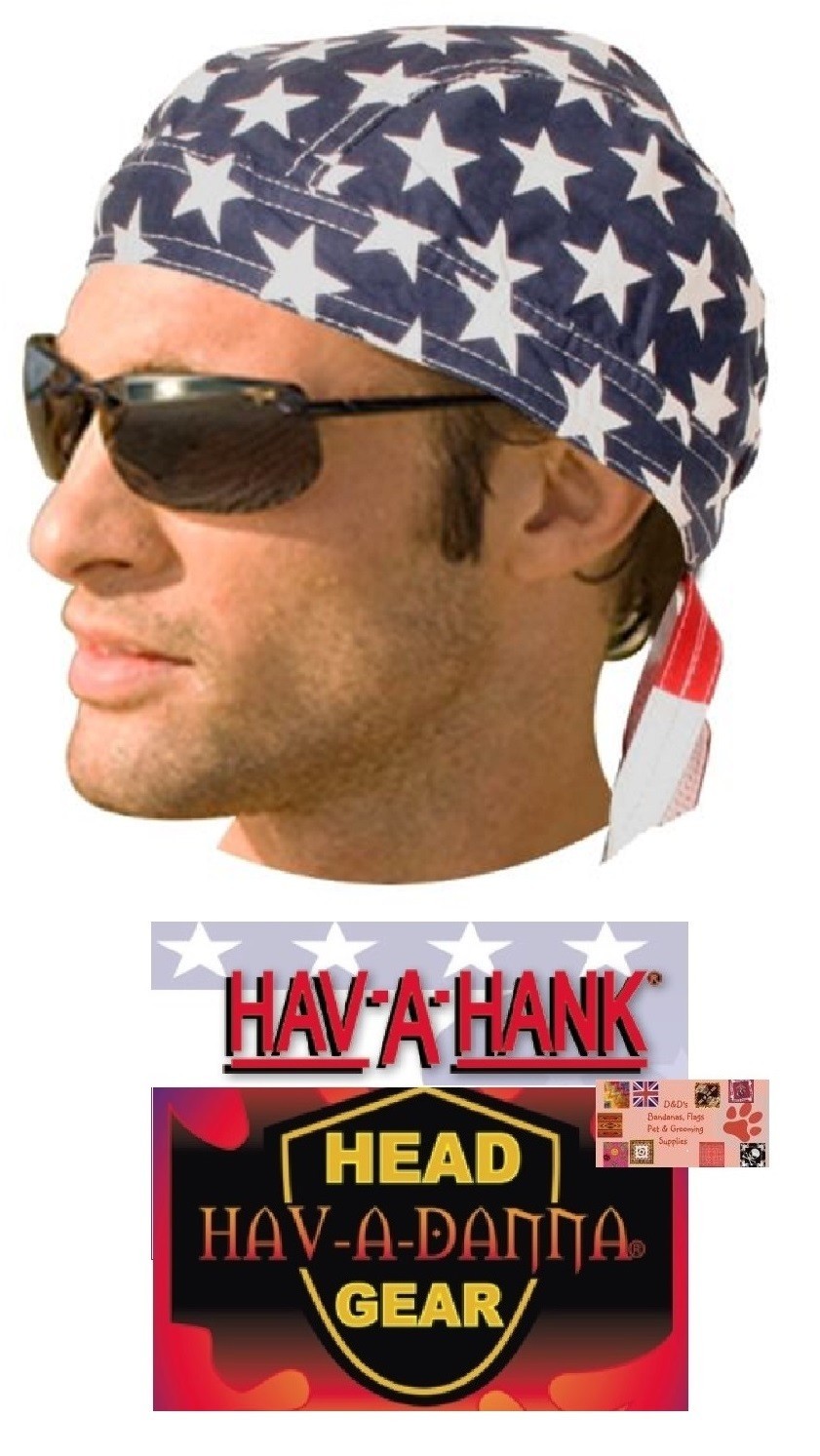 Hav-A-Hank Danna USA FLAG LINED FITTED TIED BANDANA Head Skull Cap DOO DO Rag