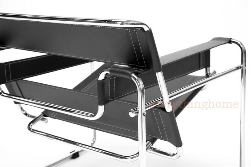 2x Black Faux Leather Strap and Chromed Steel Tubular Frame Accent Lounge Chairs