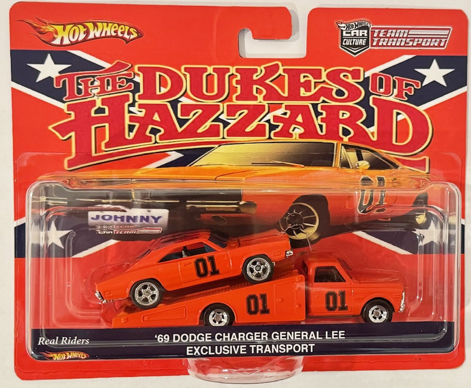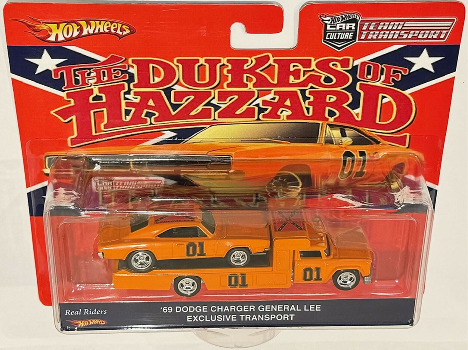 Custom Hot Wheels Team Transport '69 Dodge Charger Dukes of Hazzard Flatbed RR *