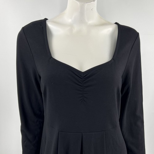 Old Navy Dress M Black Long Sleeve Sweetheart Neckline Solid Fit Flare Stretch