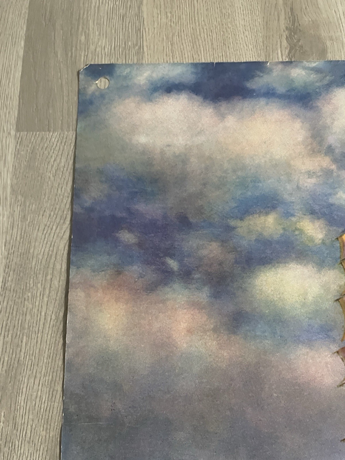 The print is folded down the middle. The print is in good condition for its age and most of the wear is around the edges and corners. Closes ups were taken of blemishes.