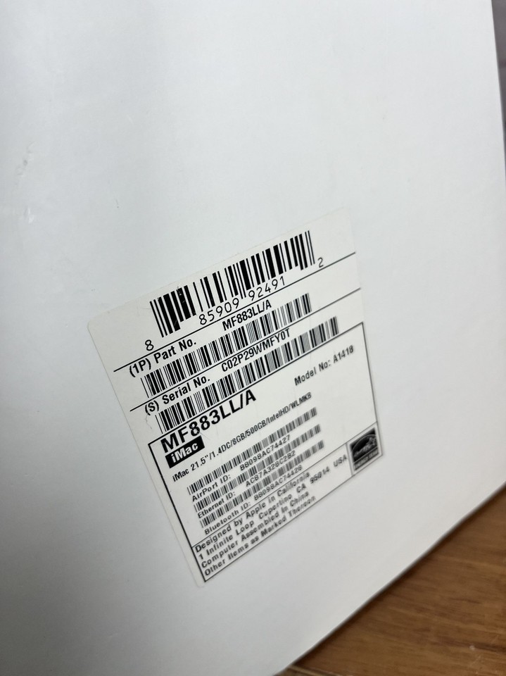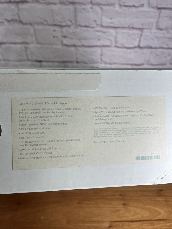Genuine Apple iMac 21.5" Mid 2014, A1418, MF883LL/A - Empty Retail Box + Inserts