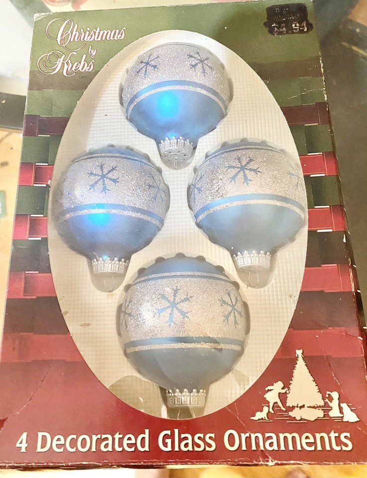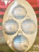 Christmas by Krebs Glass Blue Silver Glitter Snowflake Ornaments Filigree Vtg