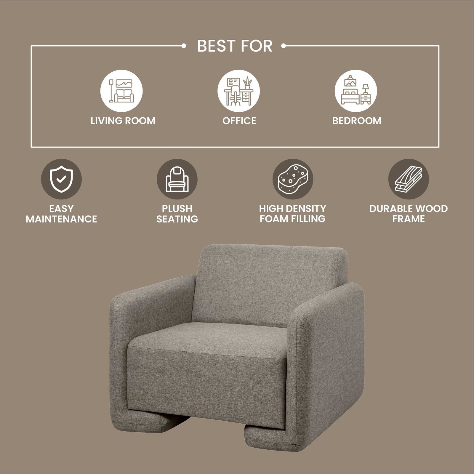 LeisureMod Nyta Accent Chair Linen Upholstered Armchair with Padded Seat and B