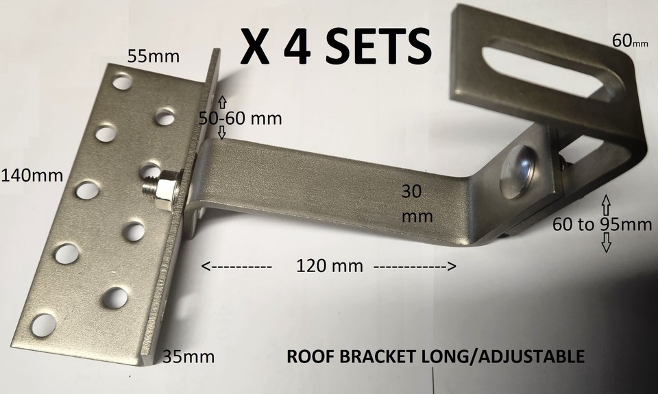 4 x SETS OF ADJUSTABLE ROOF BRACKETS WITH BOLTS/FITTINGS