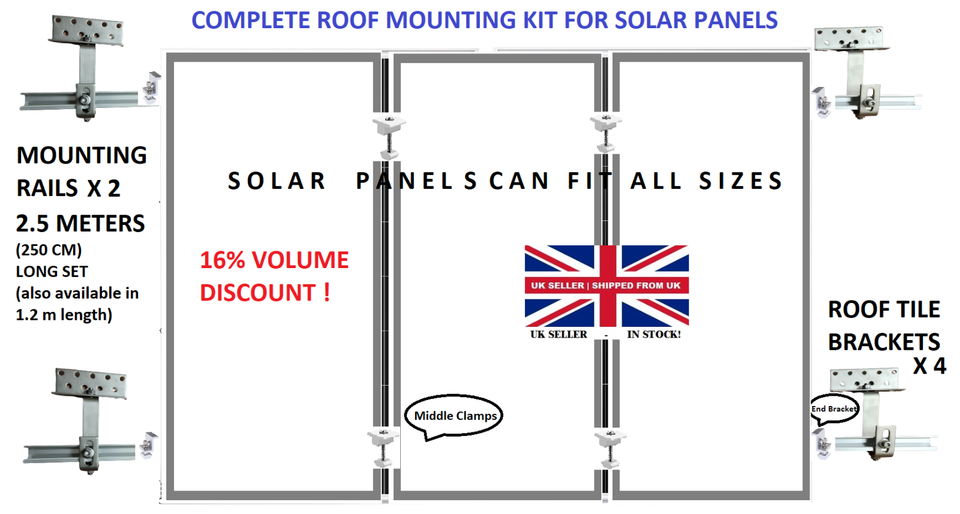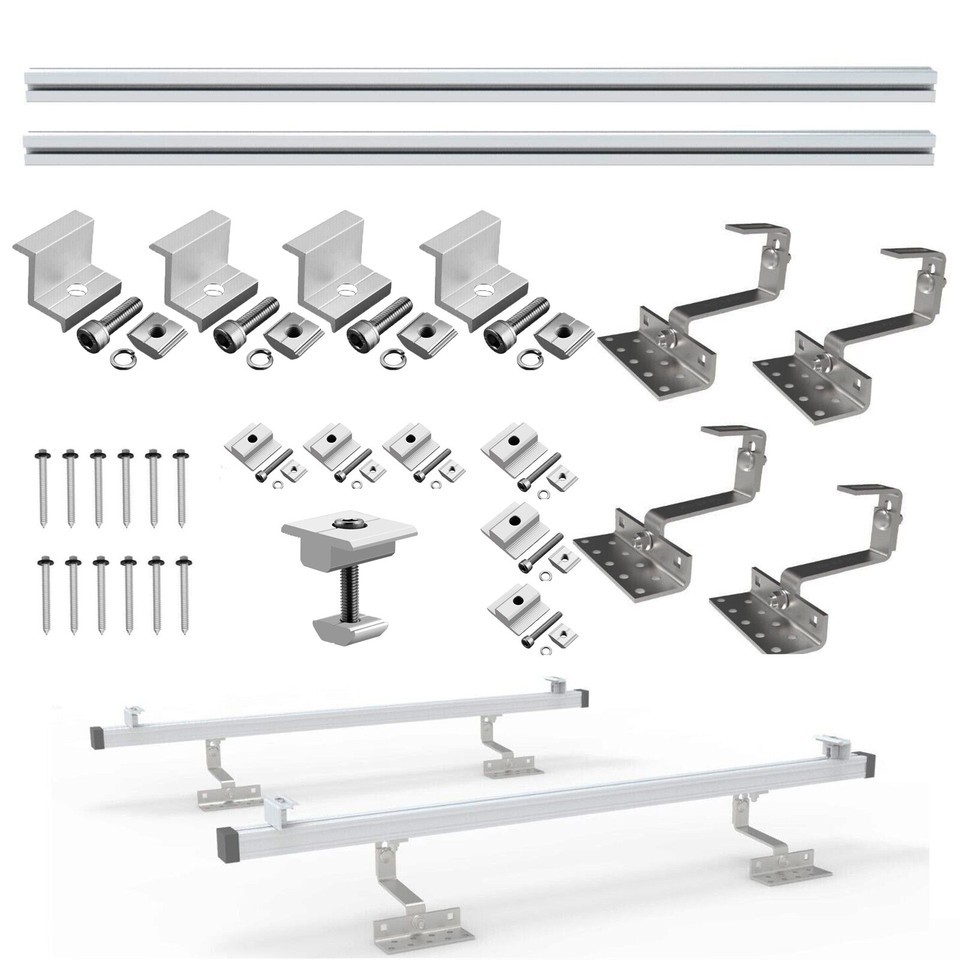 2 x 2.5m Rails Roof Bracket Hooks Complete Solar Panel Mounting Roof fitting Kit