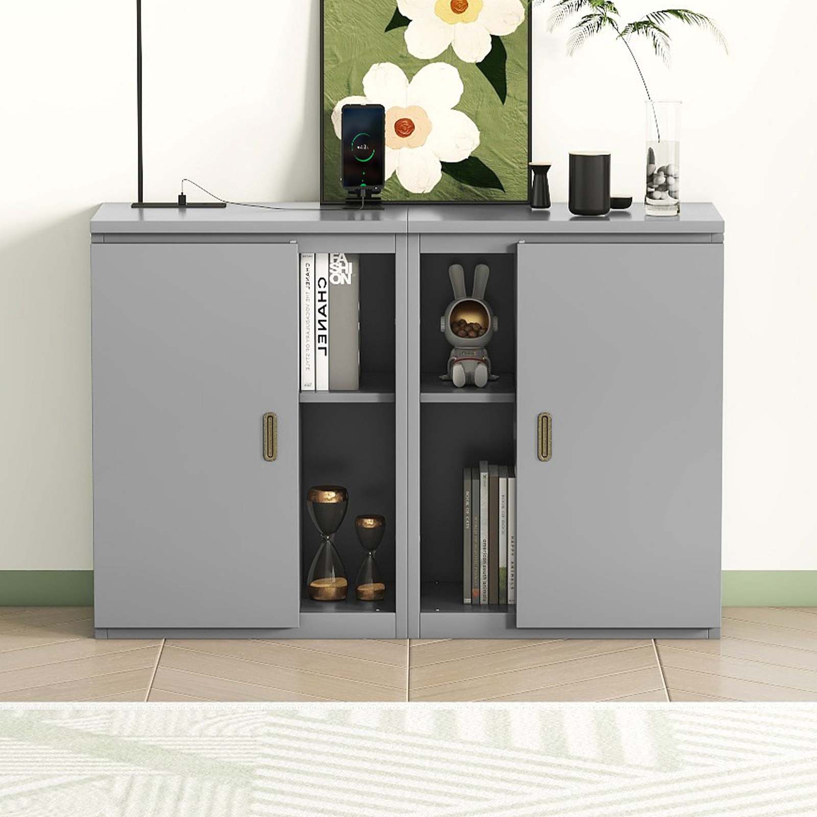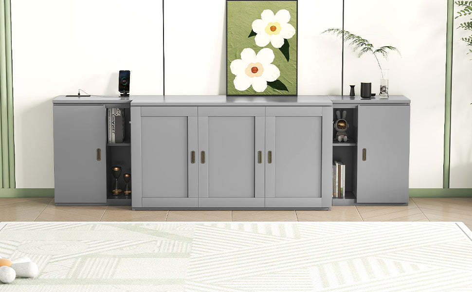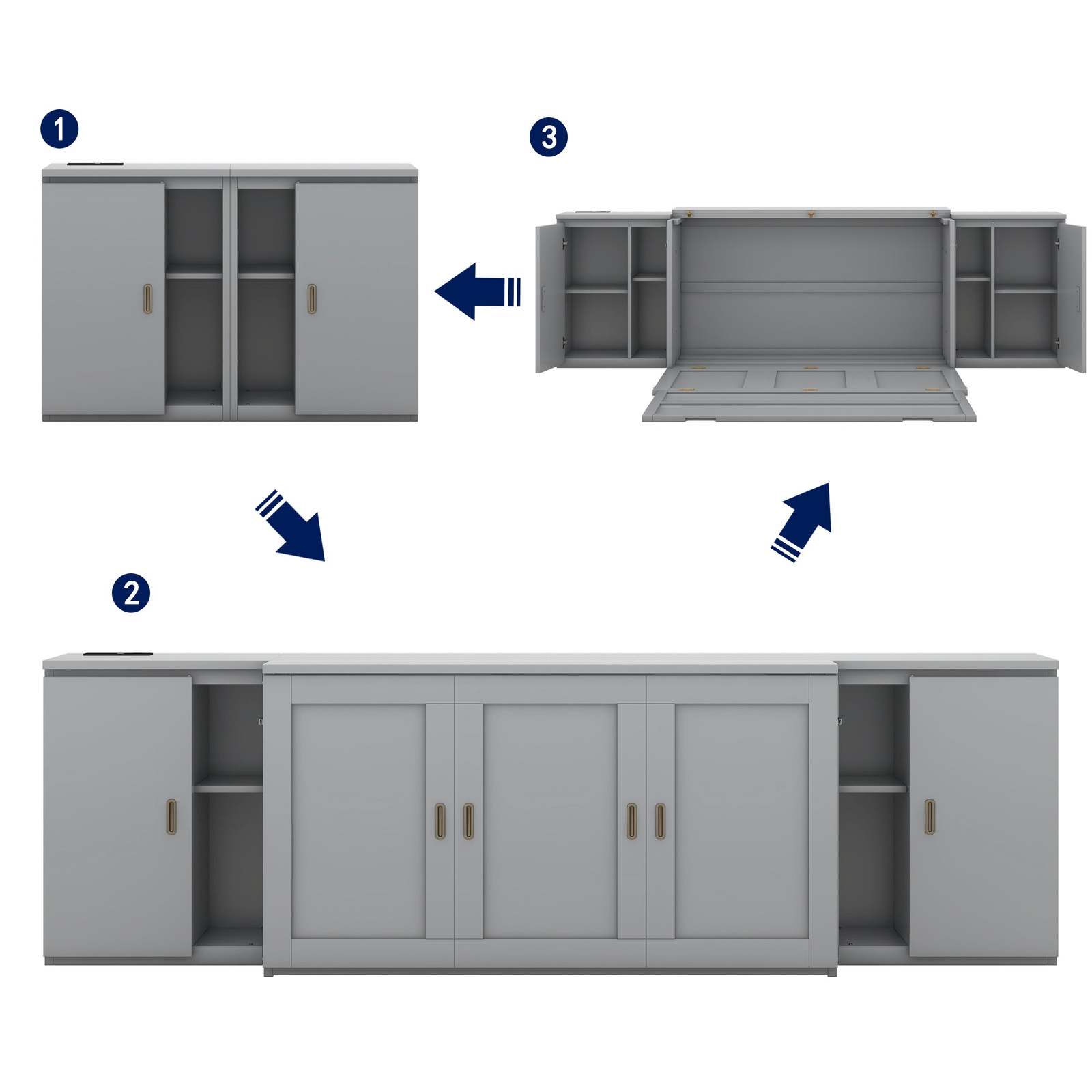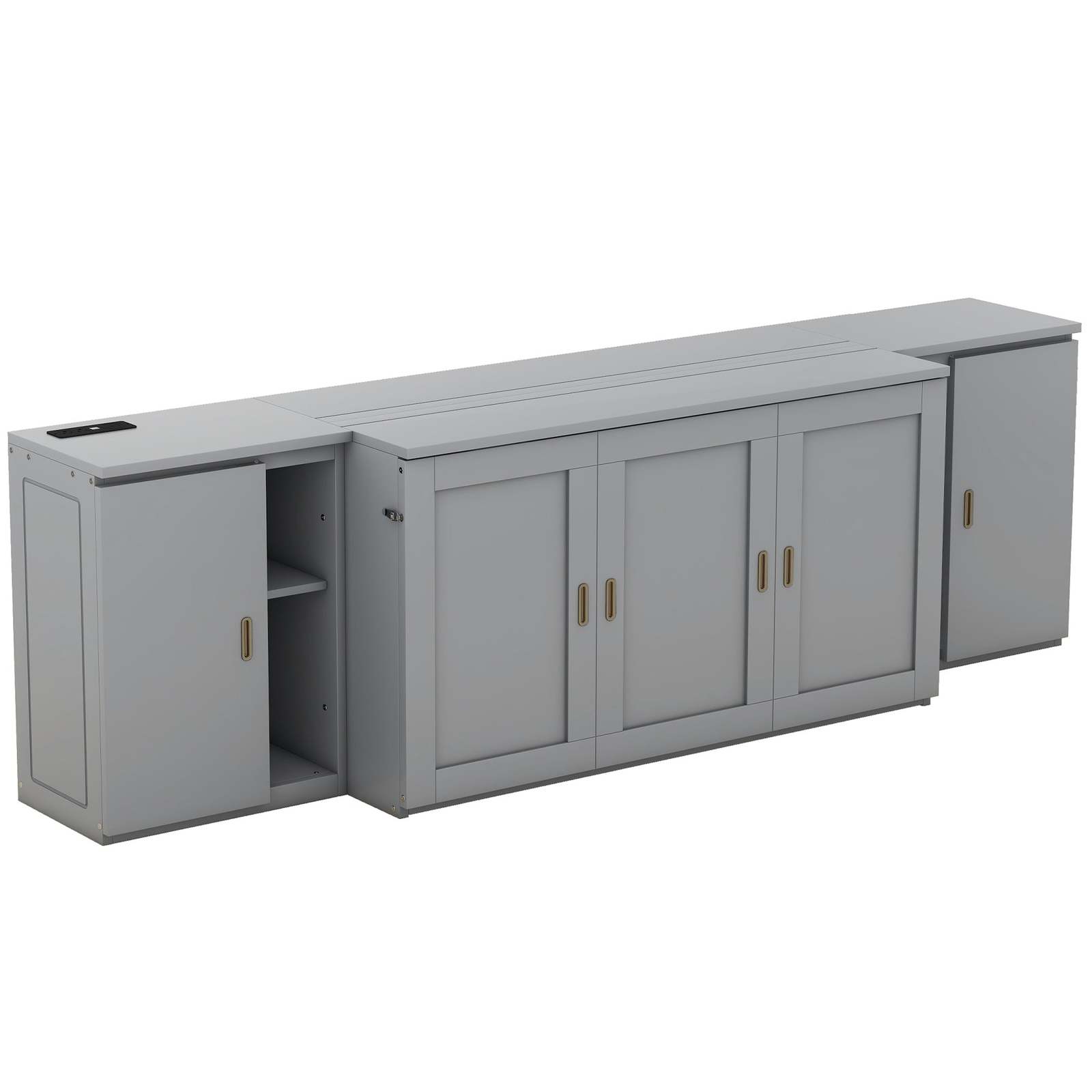 Queen Size Murphy Bed with Shelves, Cabinets, USB Ports - Gray