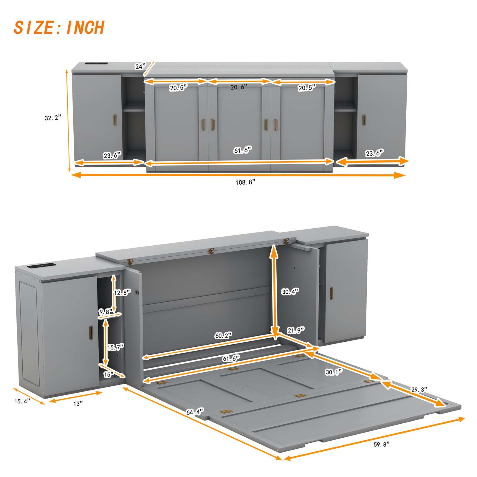 [Dimensions Assembly] 108.8'L x86.3'W x 32.2'H(As a bed) 108.8'L x 24'W x 32.2'H(As a cabinet) Mattress not included. Some assembly is required, although we have provided clear instructions and tools.