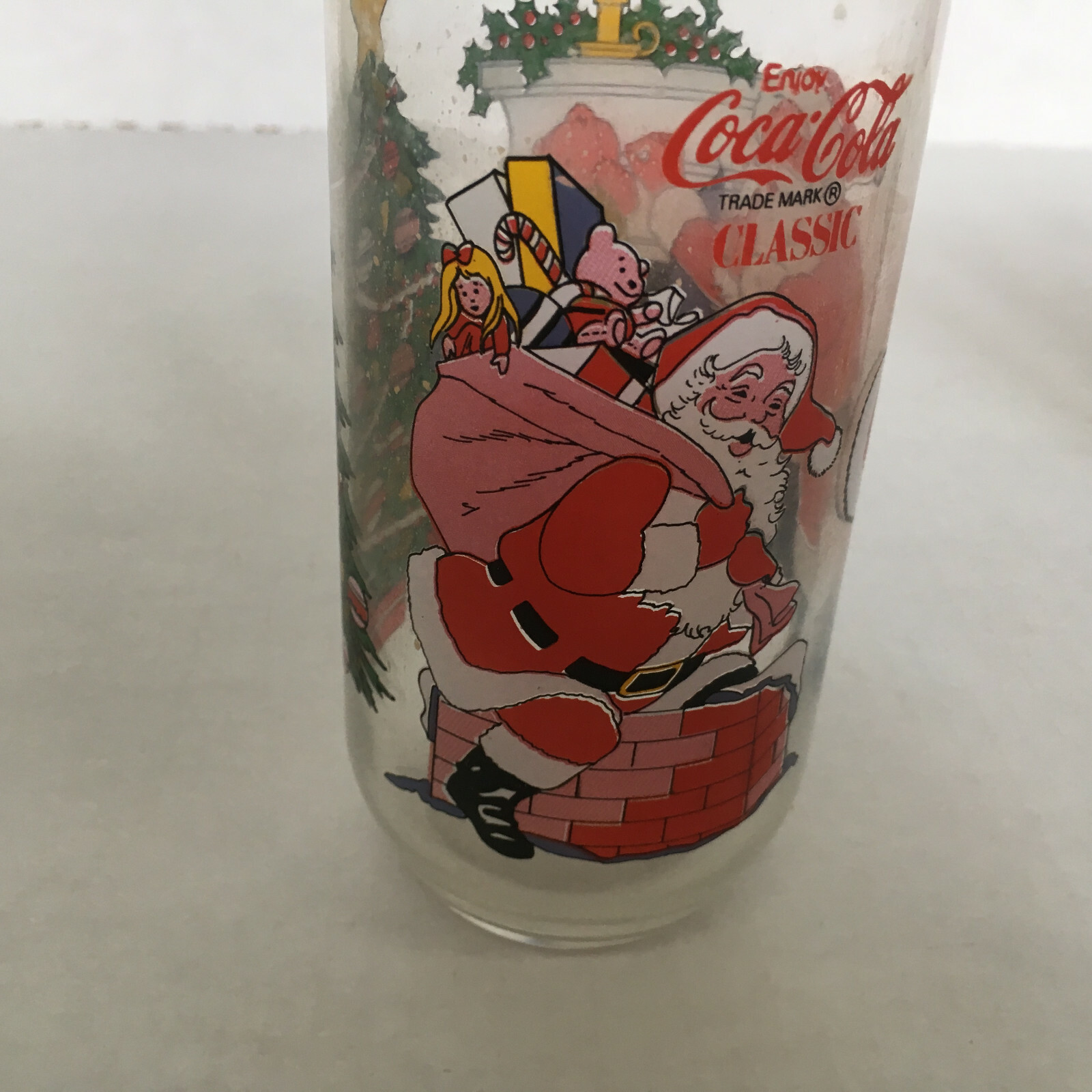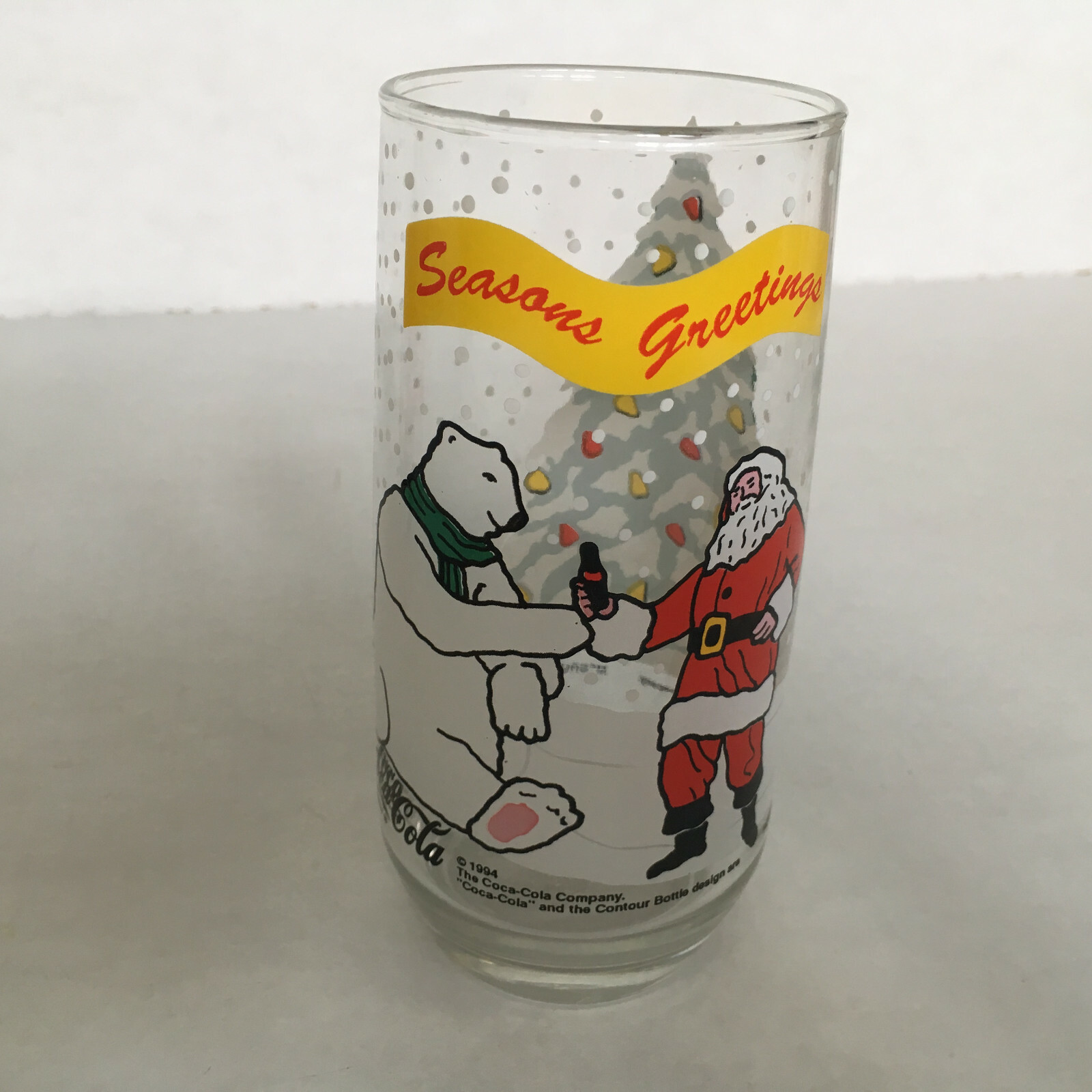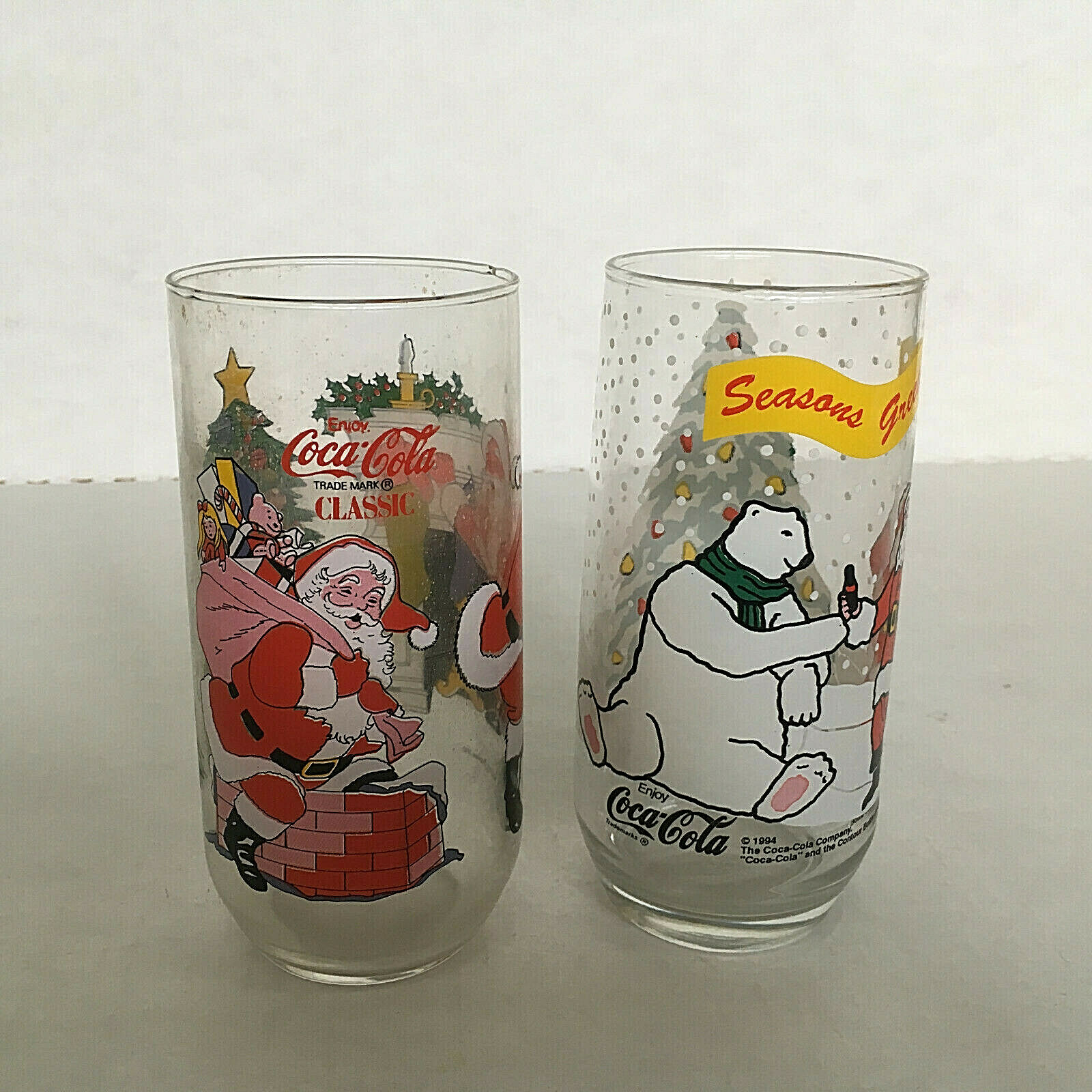 Vintage coca cola seasons greeting Christmas holiday drinking glasses santa bear