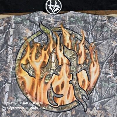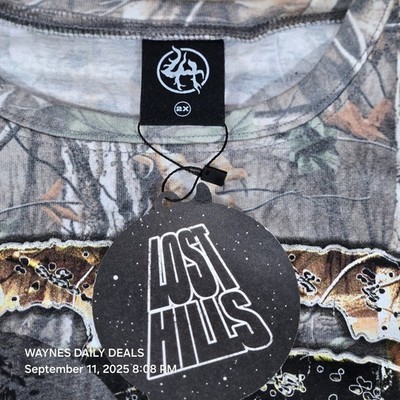 Lost Hills 2XL camo shirt with bold flame graphics ? flaming Lost Hills logo on the back and skull with flames + logo on the front. Oversized streetwear fit, Realtree all-over print. Rare collector?s piece.