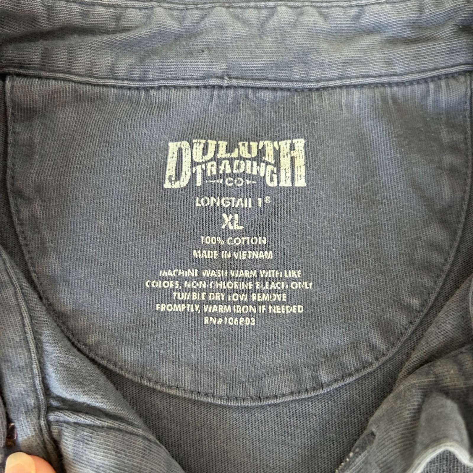 Duluth Trading XL Mens Short Sleeve Polo long tail 100% Cotton blue gray