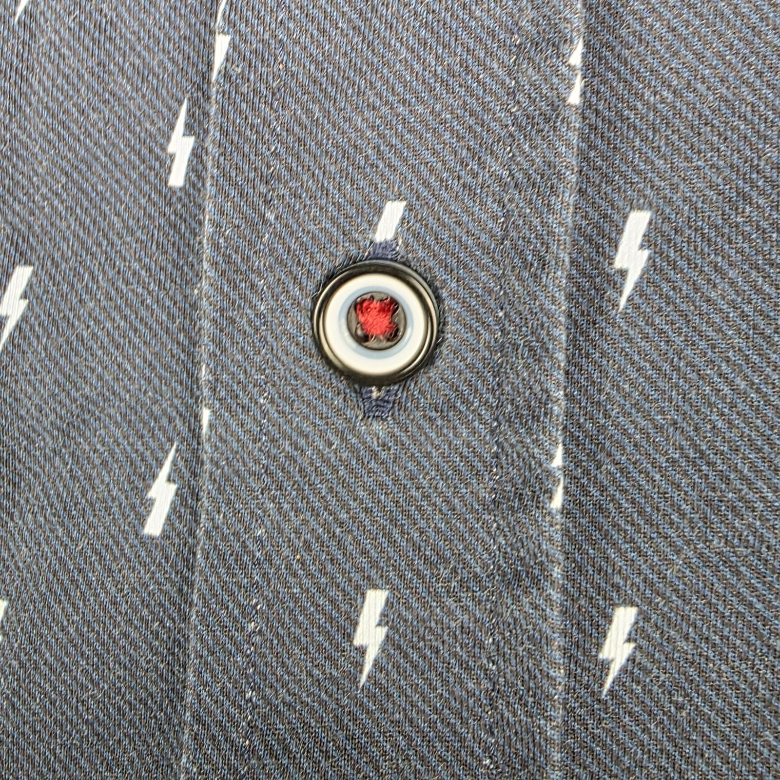 Buttercloth Shirt Mens Medium Blue Tall Fit Lighting Bolt Icy Cotton Flip Cuff