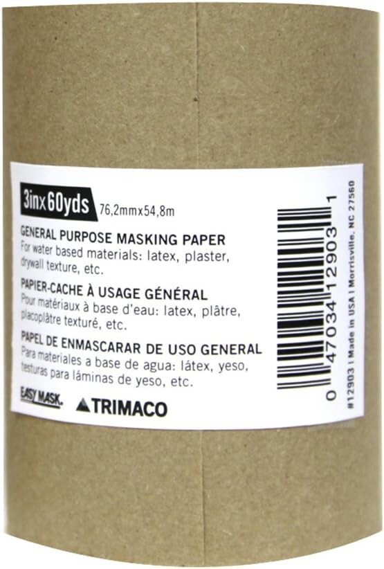 This Trimaco masking paper is perfect for any home painting project. The 180' FT length and 3'' IN width provide ample coverage for your painting needs. The brown color adds a touch of elegance to your project. This high-quality paper is made of durable material that will last for a long time. The pack contains one roll of paper, with no additional items included.