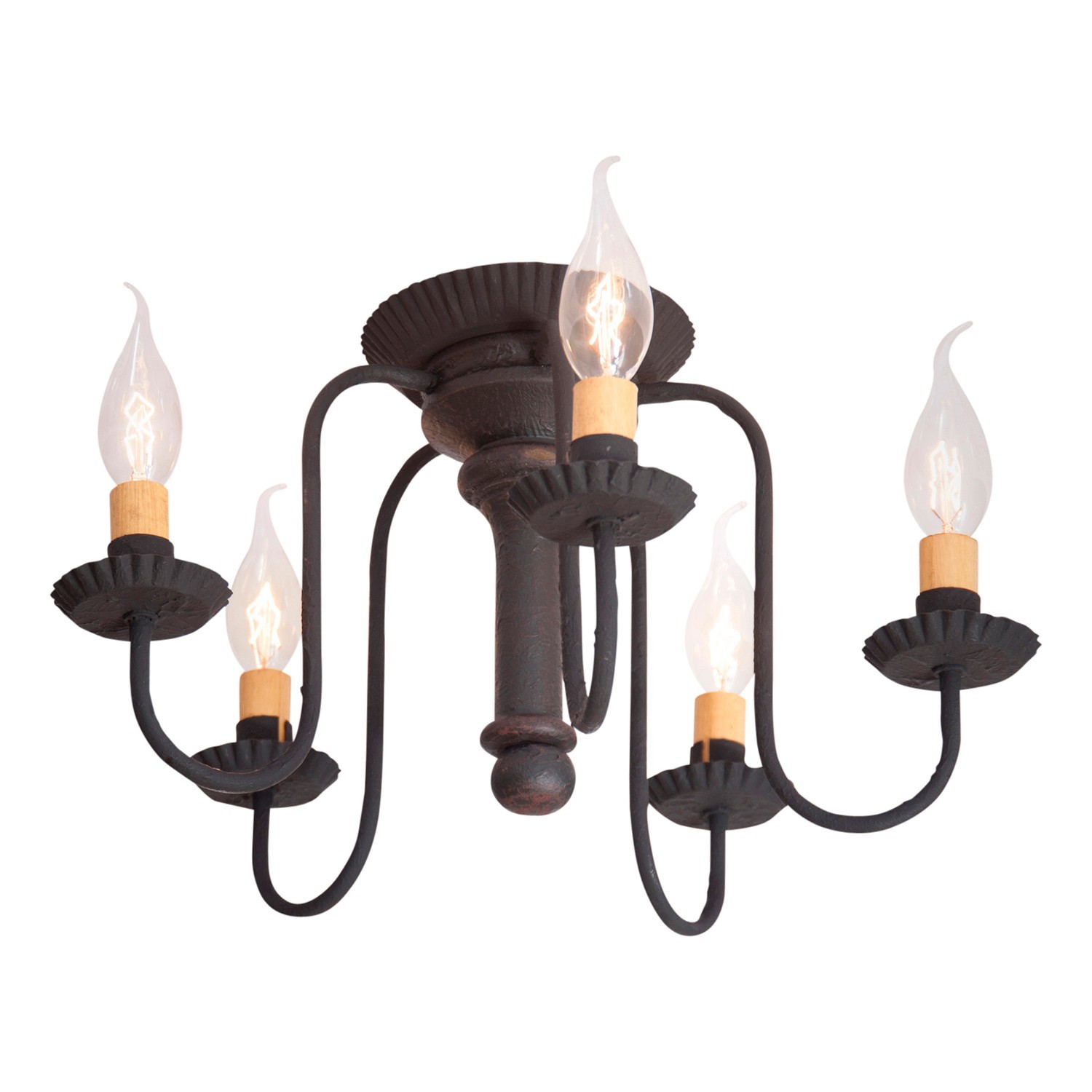 Wood CEILING LIGHT 5 ARM Berkshire Semi-Flush Mount in Black USA HANDMADE