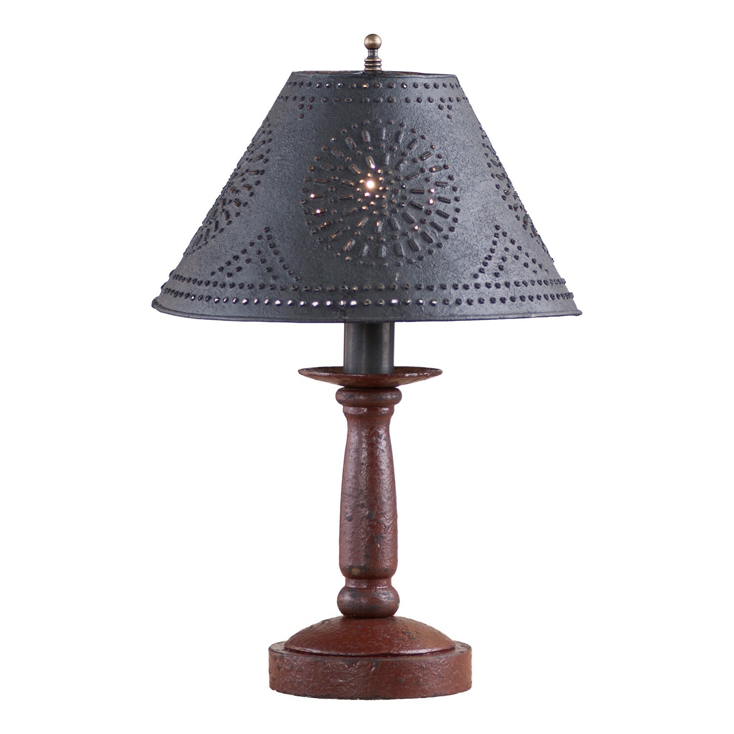 BEDSIDE TABLE LAMP with Punched Tin Shade - Distressed COLONIAL RED Finish USA