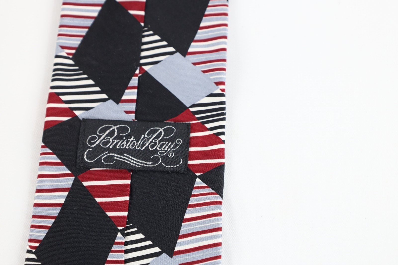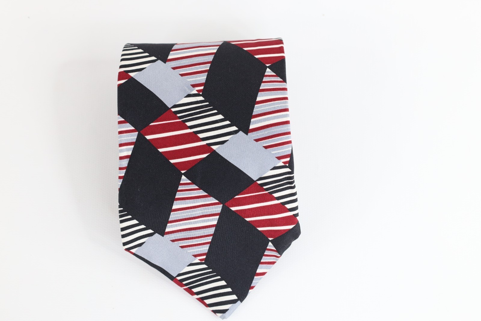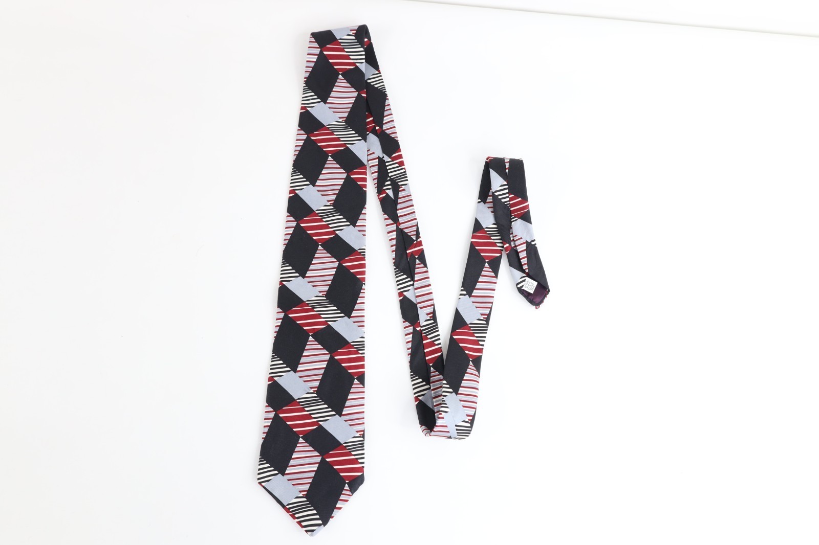 Vintage 90s Streetwear Geometric Striped Color Block Neck Tie Wedding Silk USA