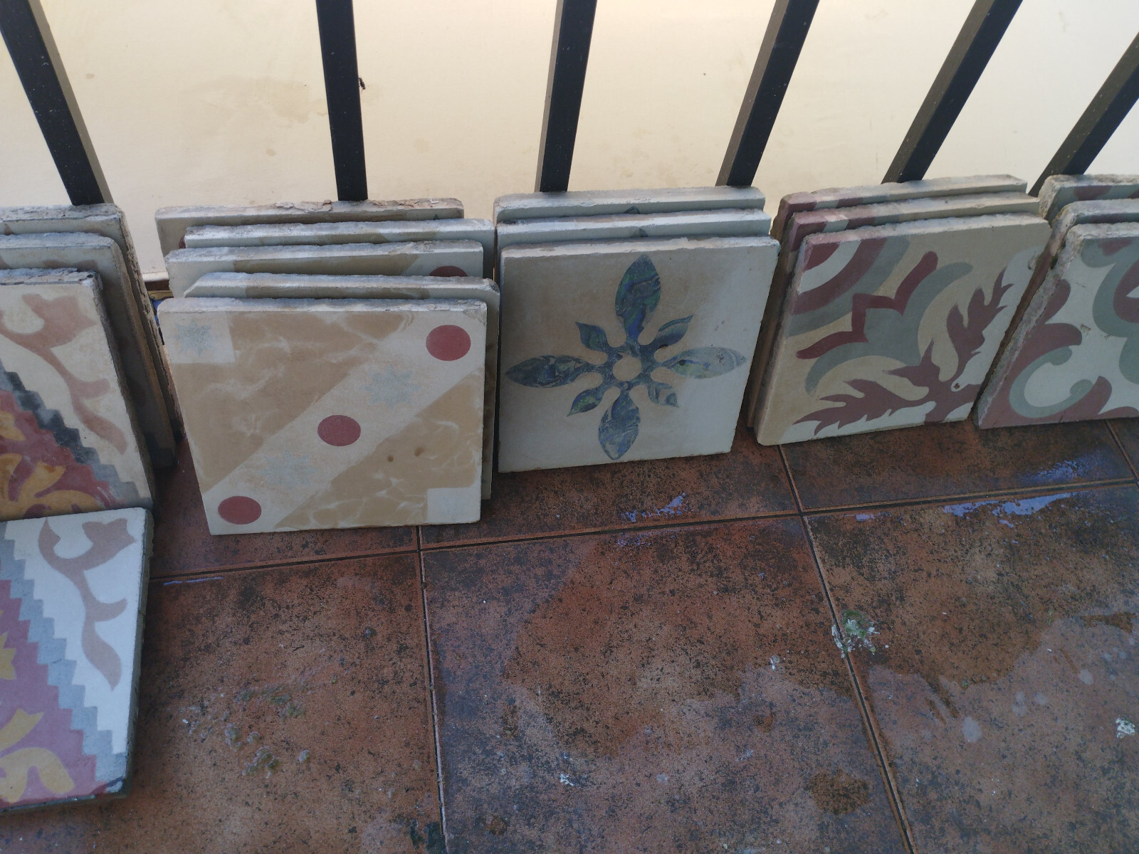 Hydraulic Tile with Red Dot Drawing Over 70 Years 20X20x2 cm
