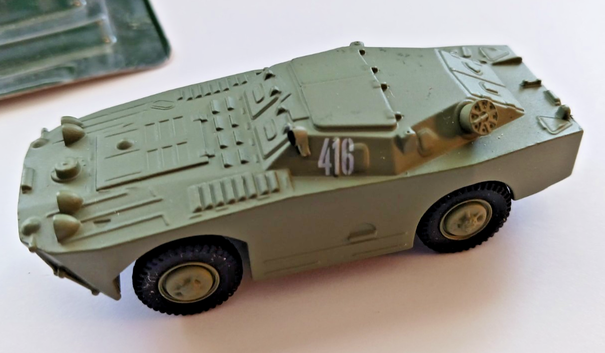 The real BRDM-1 was amphibious, which explains it's boat-like shape. This is an interesting collectable of this Cold War Era recon / scout vehicle!