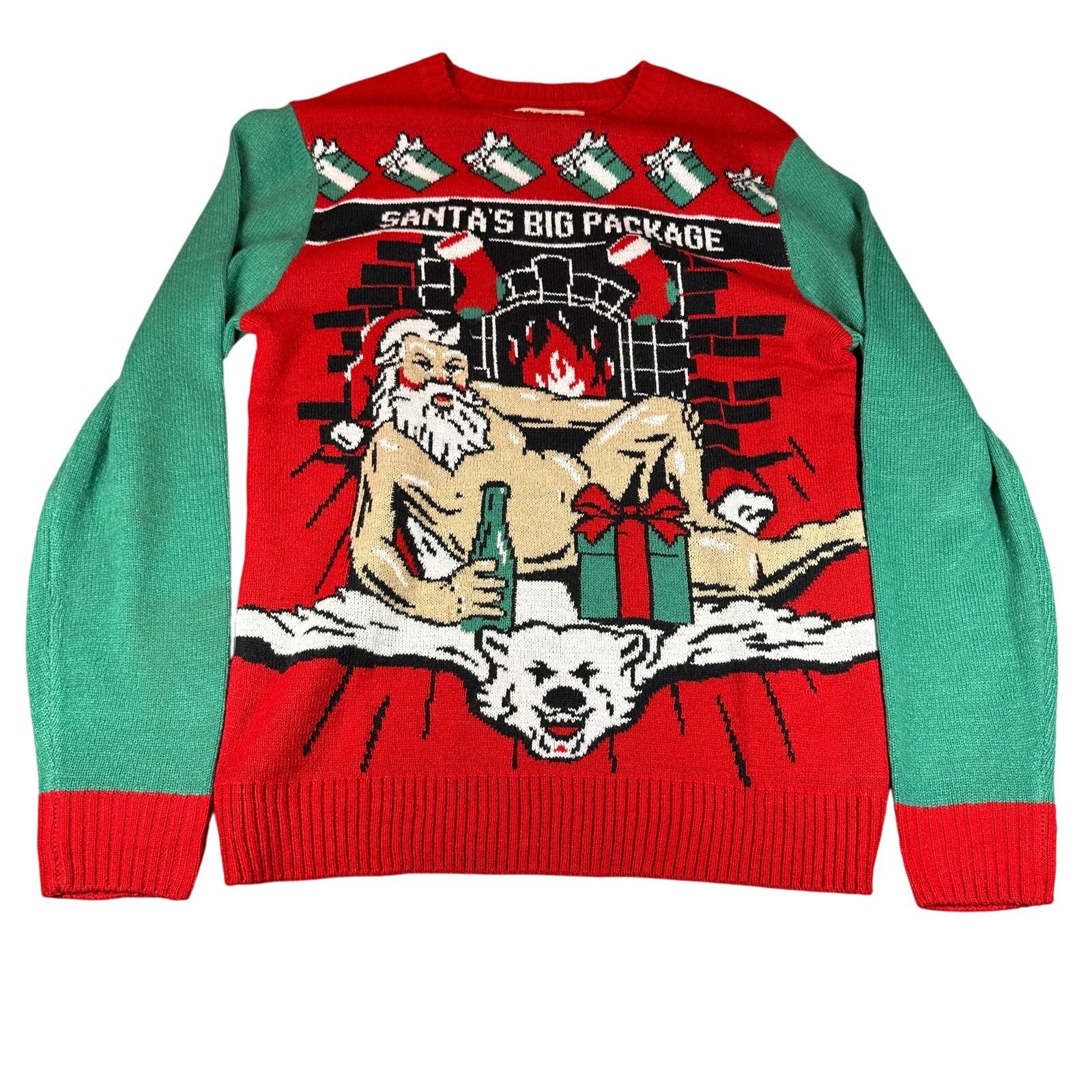 Merry Christmas Sweater Mens Medium Santas Big Package Holiday Ugly Funny