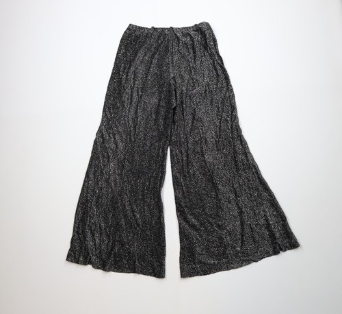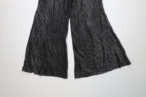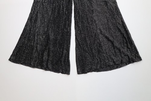 Vtg 60s 70s Boho Chic Womens 14 Metallic Rayon Sheer Knit Bell Bottoms Pants USA