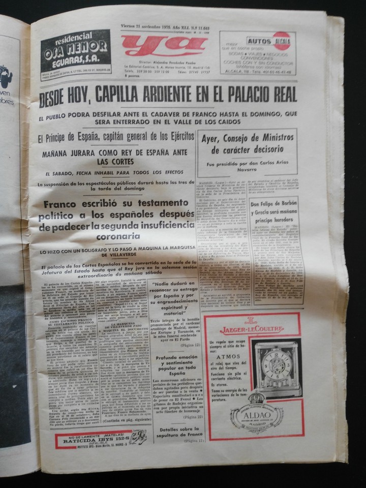 diario ya NOVEMBER 21 de de FRANCO HAS DIED UNIQUE HISTORICAL NEWSPAPER!!!