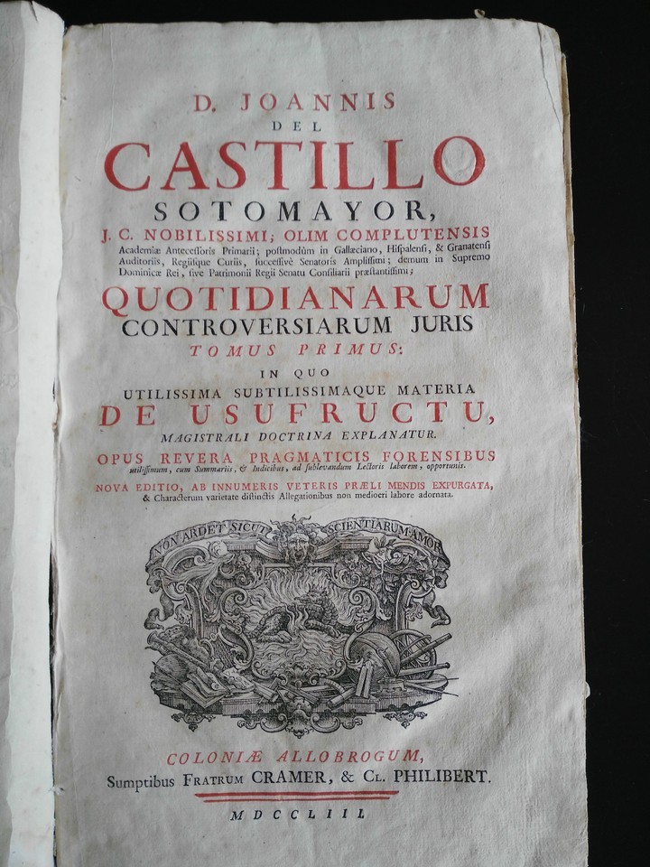 Castle Opera Omnia Juridica 1 and 2 of Usufruct Latin Year 1753 MDCCLIII Unique!