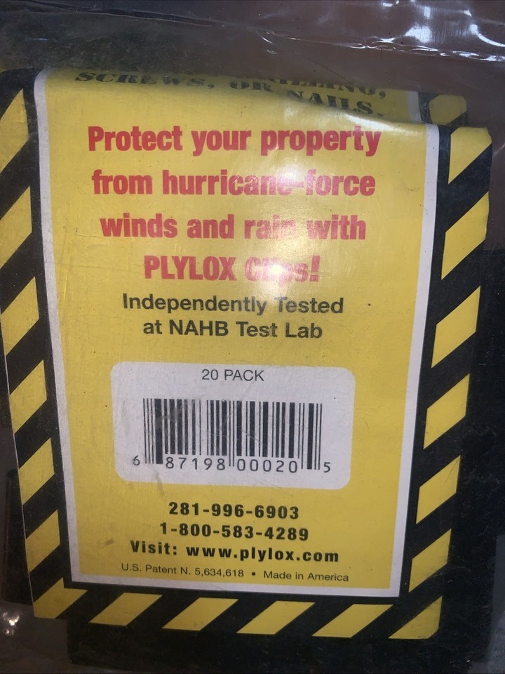 The Plylox Hurricane Clips are a set of 20 sturdy 1/2" carbon steel clips designed to securely hold hurricane panels or other temporary window coverings in place during severe weather conditions. The black color adds a sleek and discreet look to the clips, making them easy to use and versatile for various home improvement projects related to windows and window hardware. With the trusted PLYLOX brand behind them, these clips provide reliable protection and security for your home during hurricanes or other emergencies.