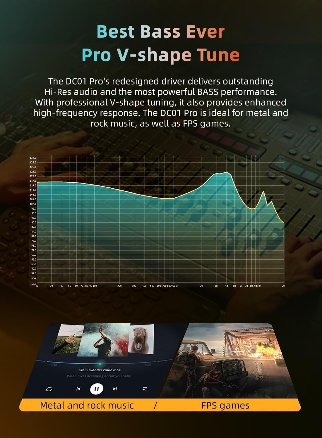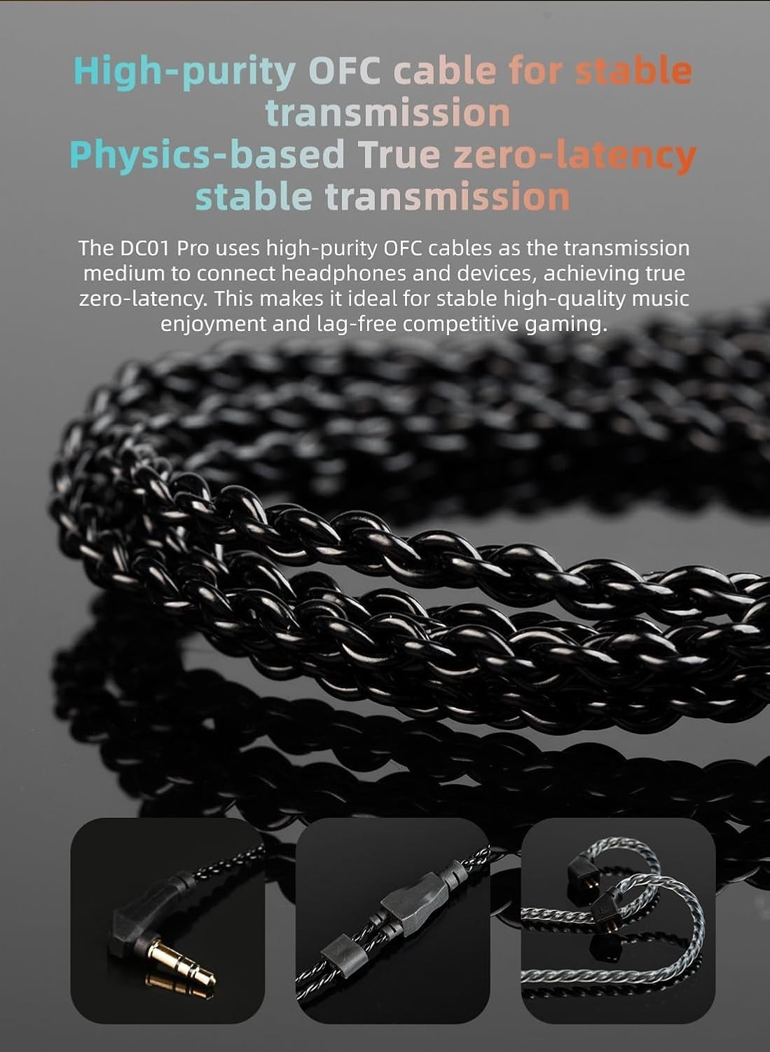 Experience superior sound quality with the CCZ DC01 Pro, a wired headphone designed for audiophiles and gamers alike. Crafted from durable metal and PC materials, it offers a comfortable fit with its classic patent ear hook, ensuring stability during leisure or sports activities. The redesigned driver delivers outstanding Hi-Res audio and powerful bass, perfect for metal, rock, and FPS gaming. Equipped with intelligent noise reduction and a highly sensitive neck-mounted microphone, enjoy clear voice communication in any environment. Complete with a detachable cable, interchangeable silicone ear tips in S/M/L, and a high-purity OFC cable for zero-latency transmission, the DC01 Pro guarantees an immersive and lag-free listening experience.